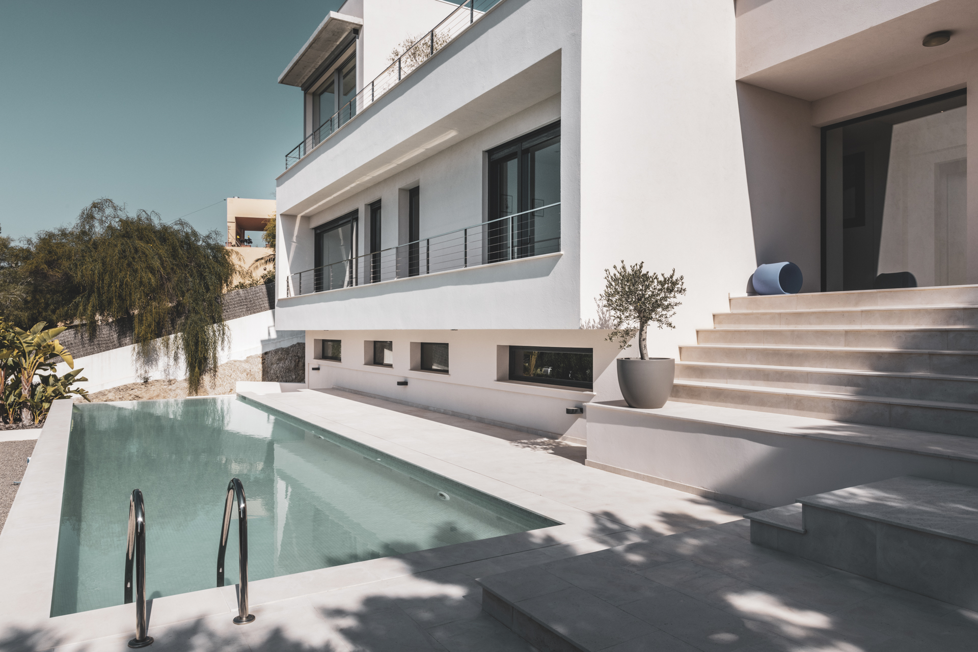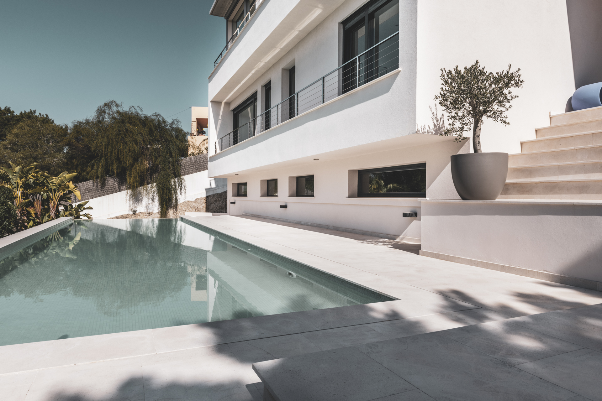 Eine luxuriöse und minimalistische Villa in der exklusiven Gegend von Talamanca mit herrlichem Meerblick. Mit drei Schlafzimmern und drei Bädern.