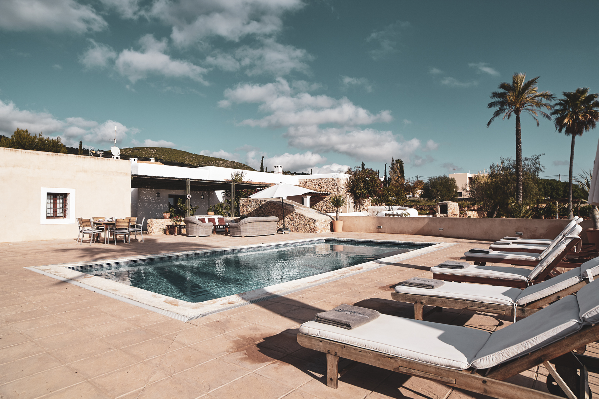 La villa es una finca típica ibicenca construida en 1750, bellamente restaurada con el máximo confort y tecnología moderna. La villa tiene seis dormitorios y cuatro baños. Todos los dormitorios tienen aire acondicionado, caja fuerte y TV. La cocina está totalmente equipada con encimera de gas y horno, frigorífico, lavavajillas, microondas, cafetera, batidora, tostadora, cafetera, exprimidor y horno de leña. La sala de estar incluye cómodos sofás, play station, home cinema, reproductor iPod, TV de plasma vía satélite y mucho más. La zona de la piscina incluye tumbonas y mucho espacio para relajarse bajo el sol.