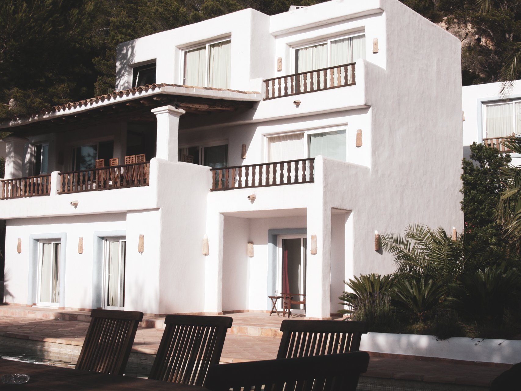 En la zona de la piscina hay dos apartamentos independientes, uno es un dormitorio doble y el otro es de matrimonio. Ambos con cuarto de baño. En la parte trasera de la propiedad nos encontraremos con el séptimo dormitorio, también con su propia entrada, con dos camas individuales y un cuarto de baño.