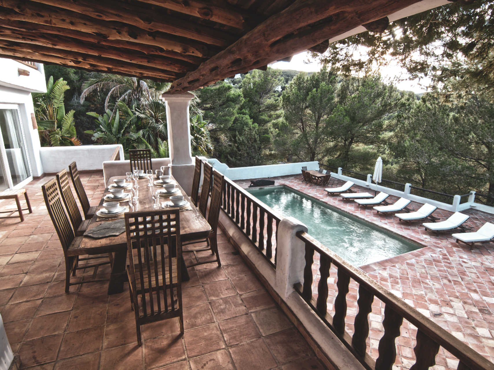 La zona de la piscina es simplemente fantástica, con una atractiva piscina rodeada de tumbonas acolchadas y una zona de comedor para disfrutar de fabulosas comidas o cenas admirando las vistas y con espacio suficiente para reunir a todo el grupo.