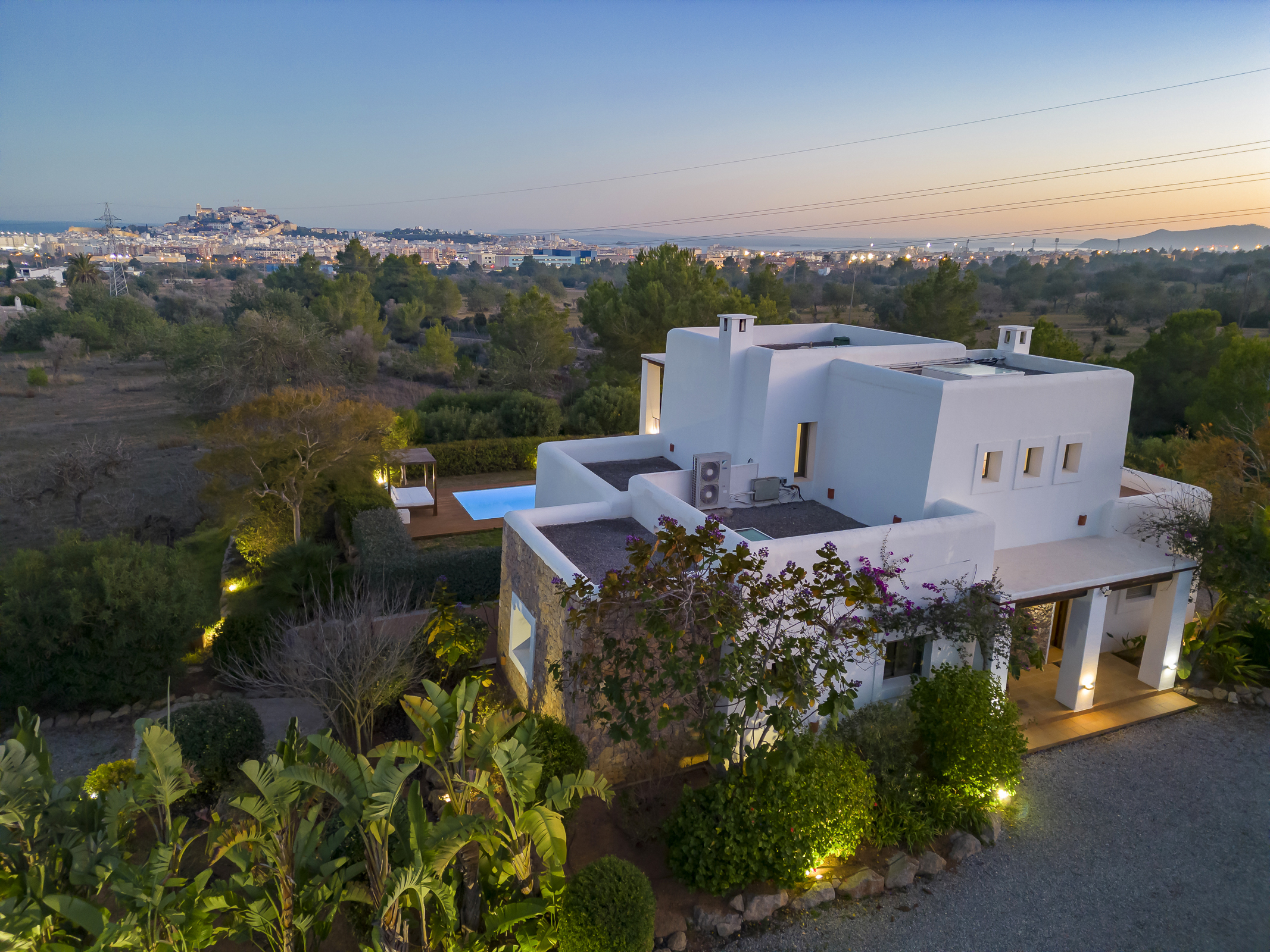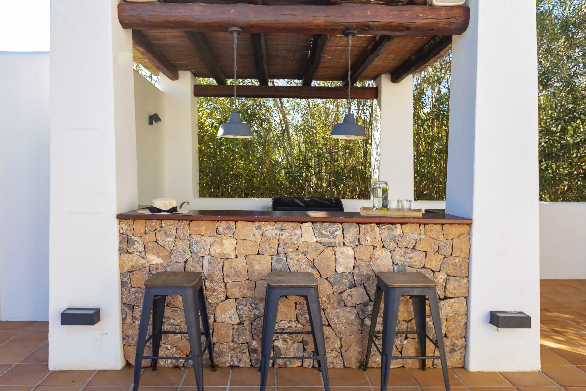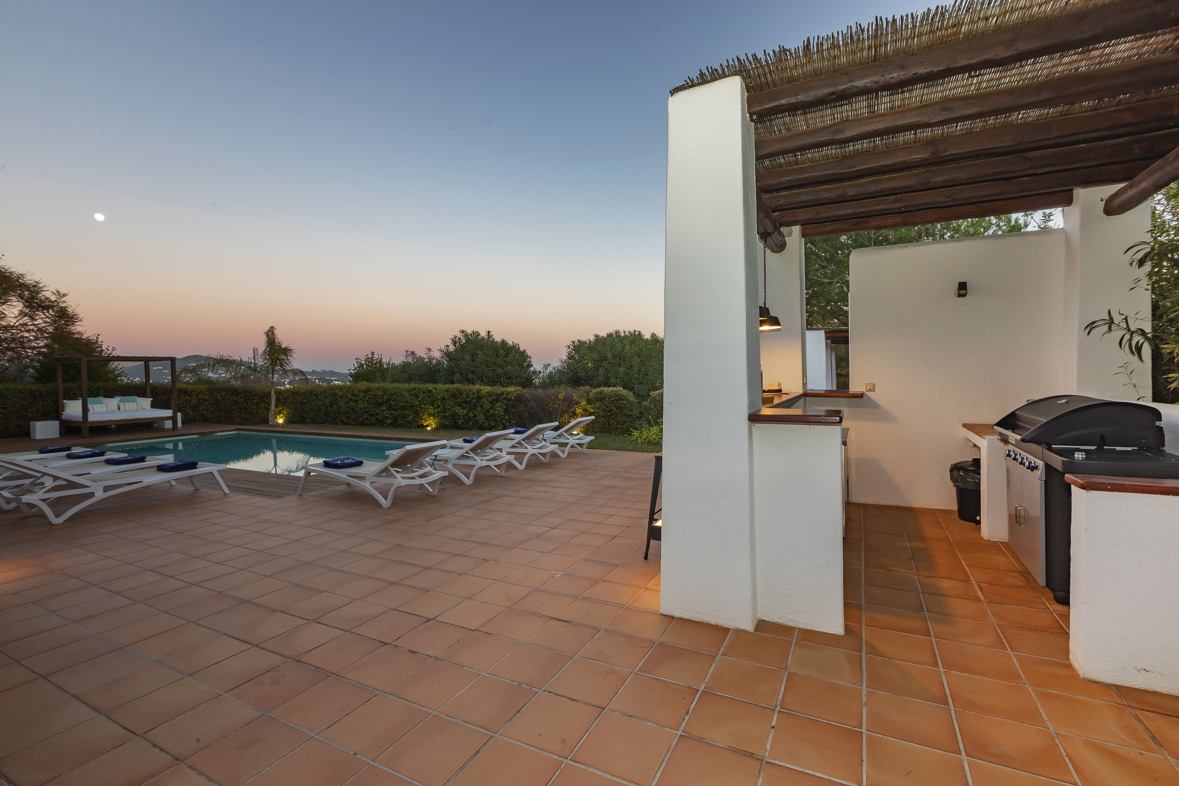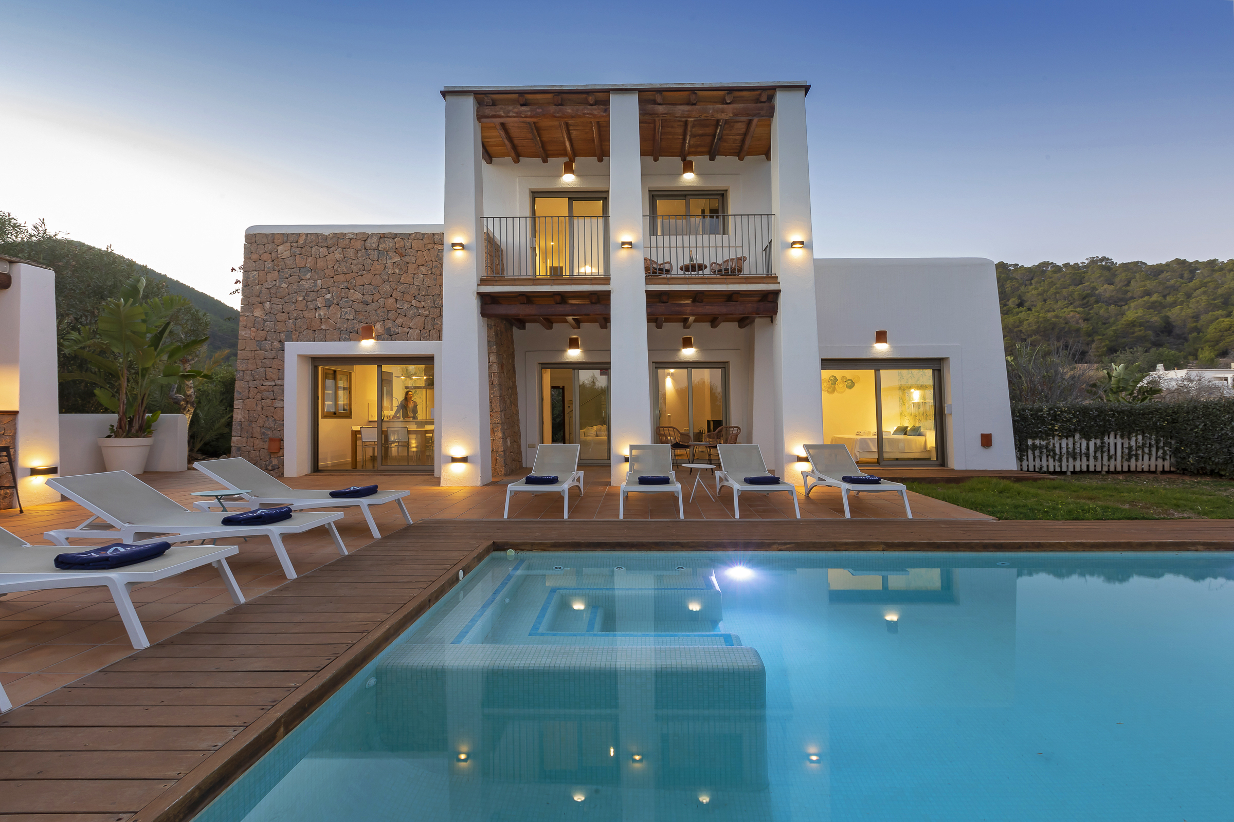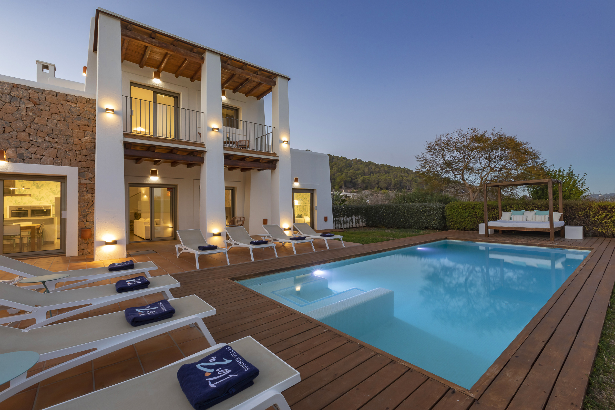Sarete subito catturati da questa incredibile ed affascinante villa, caratterizzata dalla pietra di Ibiza su muri bianchi. L’ingresso della villa vanta un invitante atrio che vi conduce alla comoda area soggiorno, che include la cucina aperta e la zona pranzo, con vista e accesso sui giardini e la piscina, e una scalinata inondata di luce naturale proveniente dai lucernari incastonati negli alti soffitti.