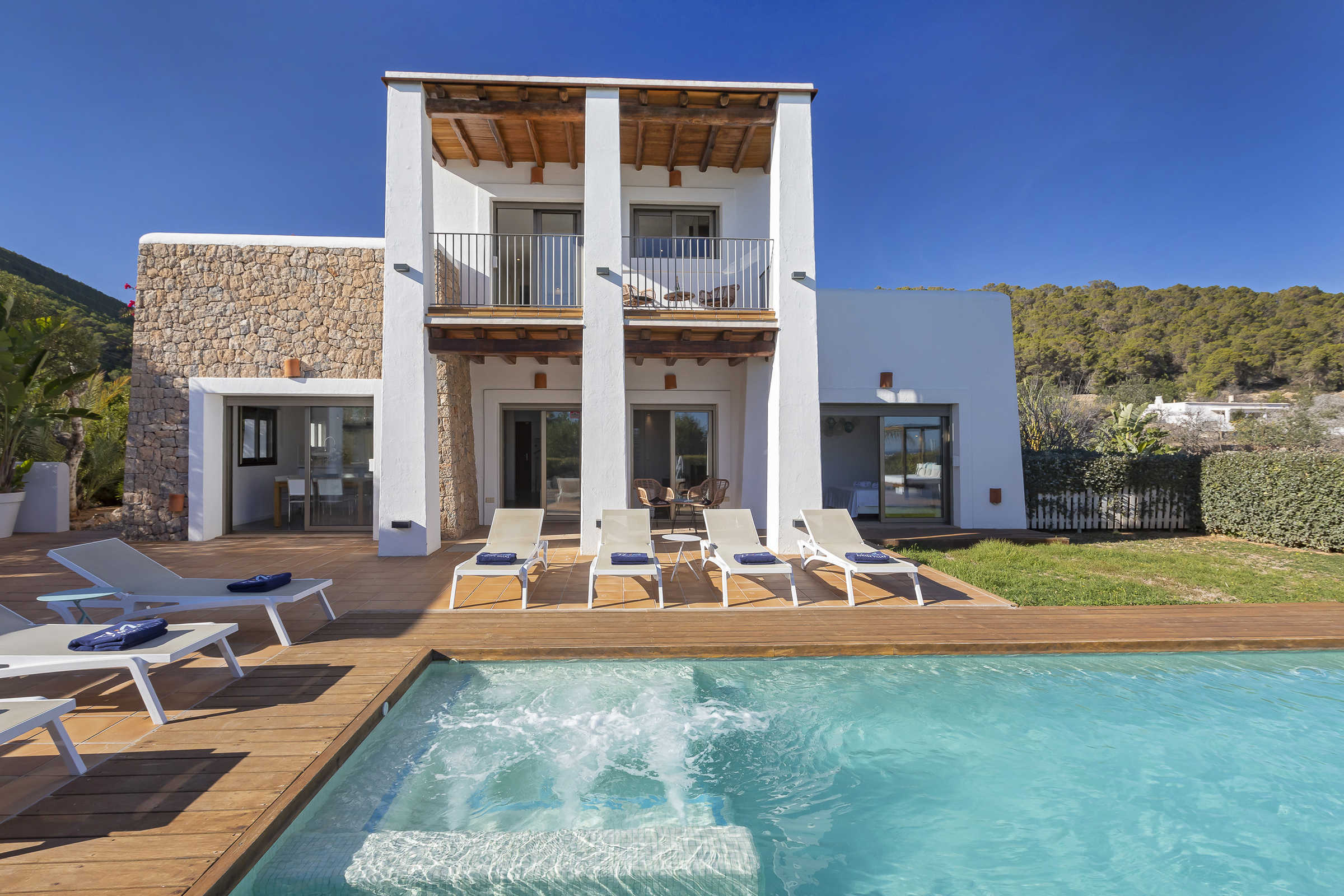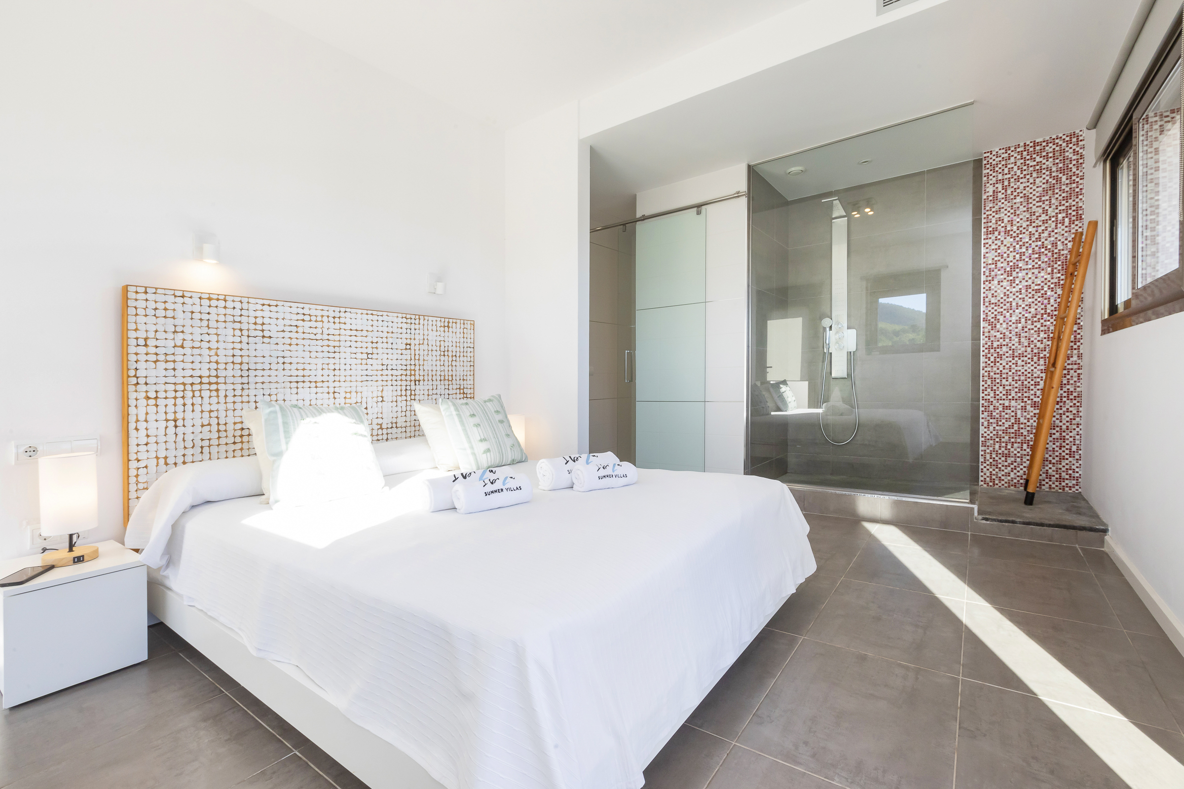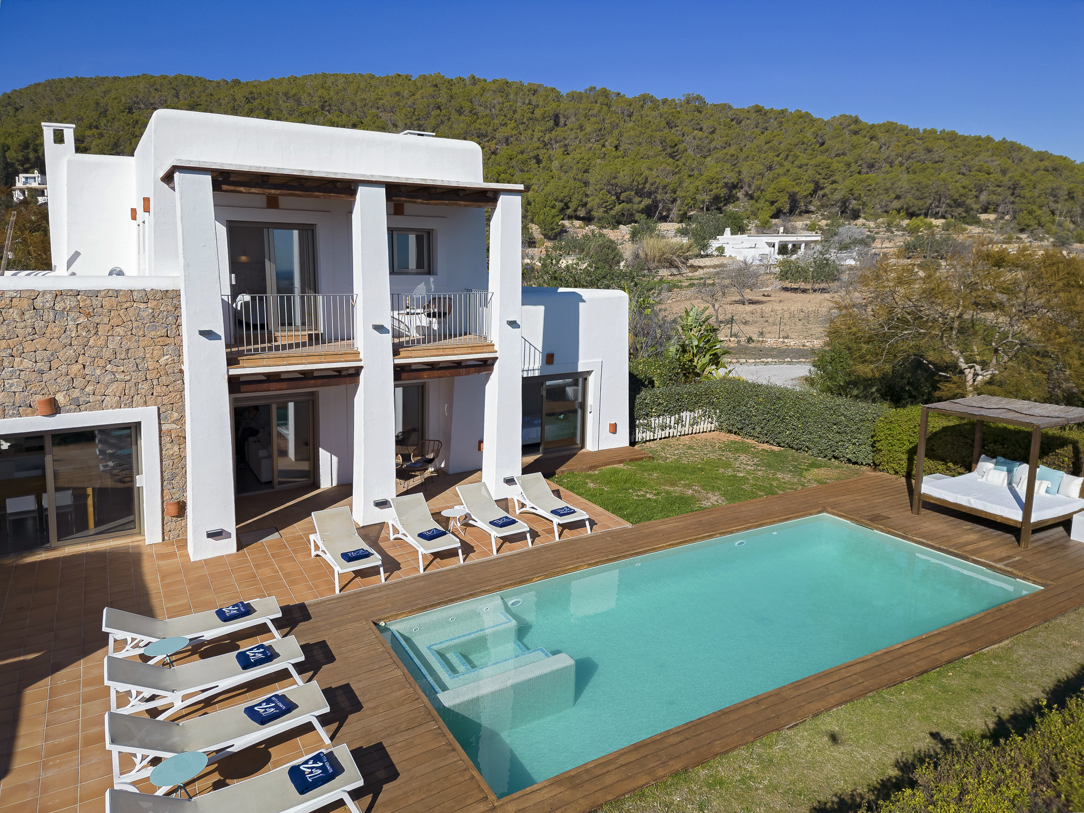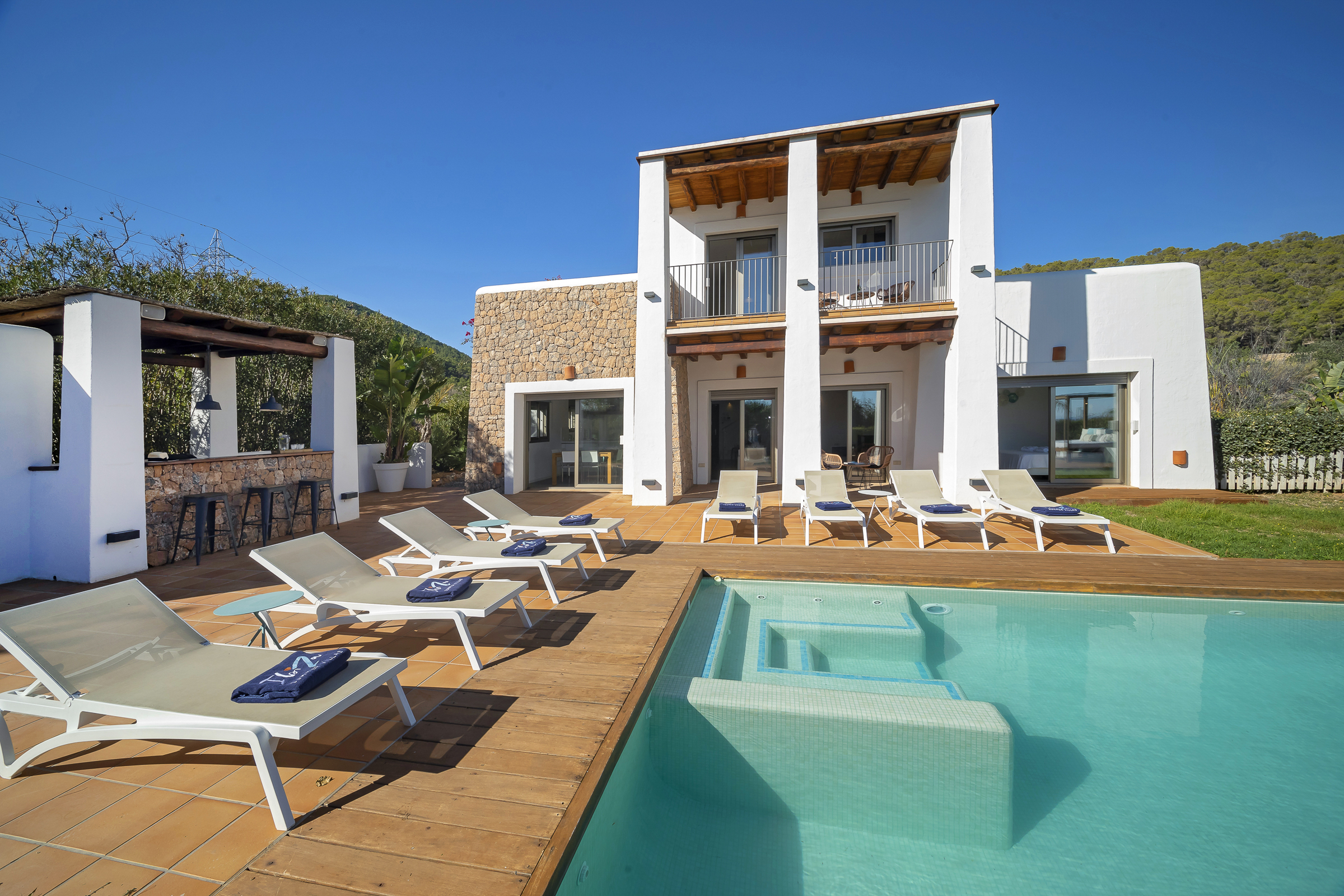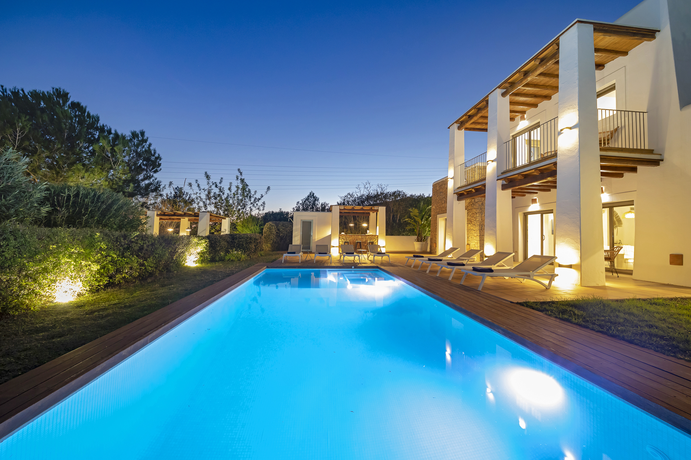 Sarete subito catturati da questa incredibile ed affascinante villa, caratterizzata dalla pietra di Ibiza su muri bianchi. L’ingresso della villa vanta un invitante atrio che vi conduce alla comoda area soggiorno, che include la cucina aperta e la zona pranzo, con vista e accesso sui giardini e la piscina, e una scalinata inondata di luce naturale proveniente dai lucernari incastonati negli alti soffitti.