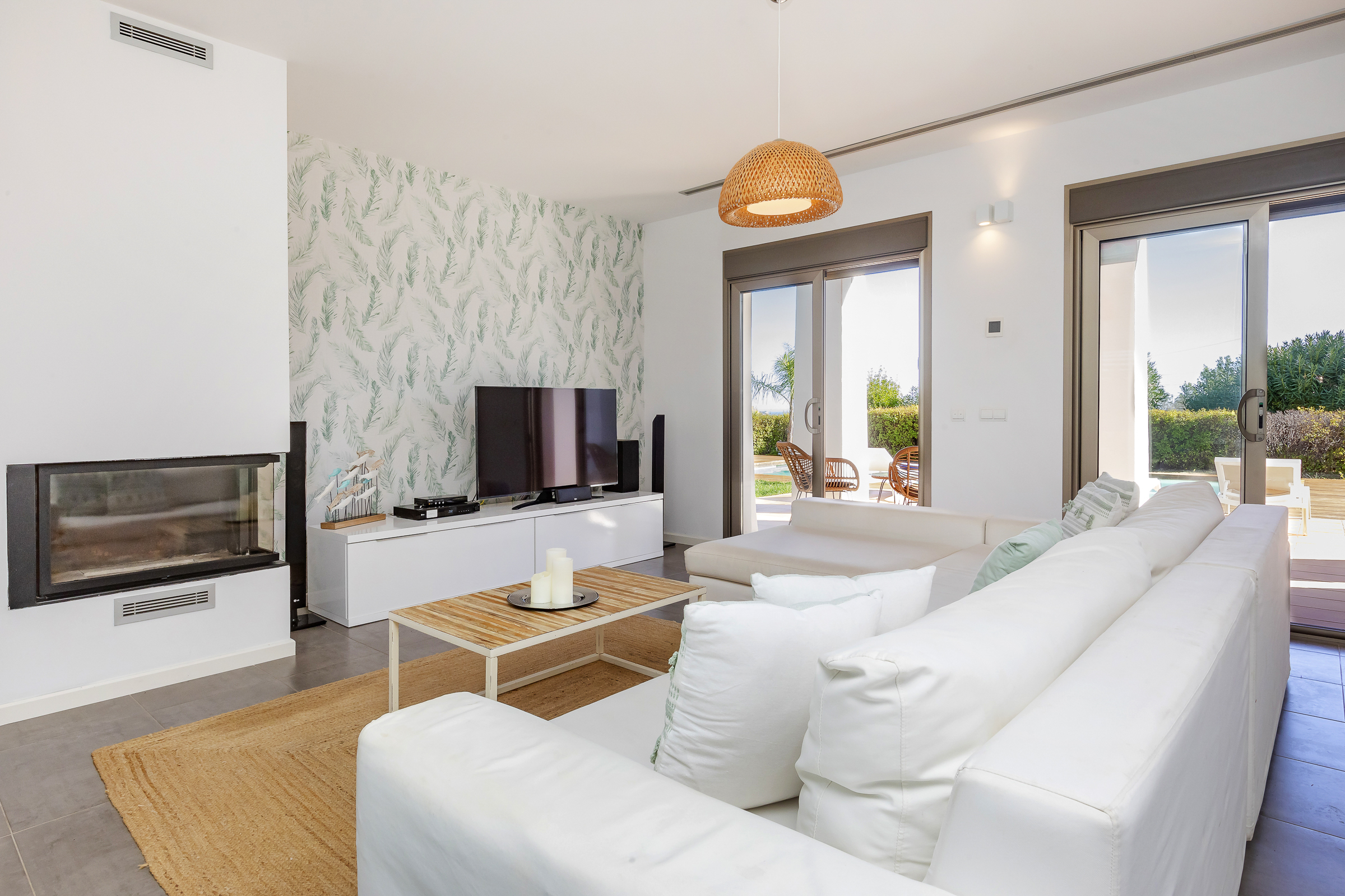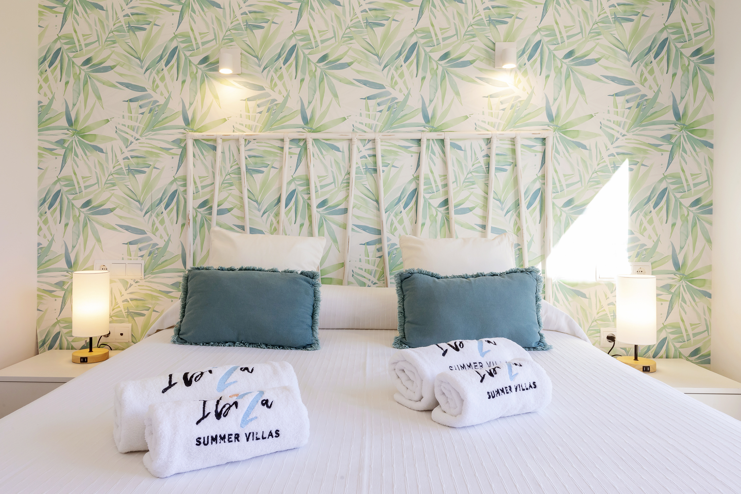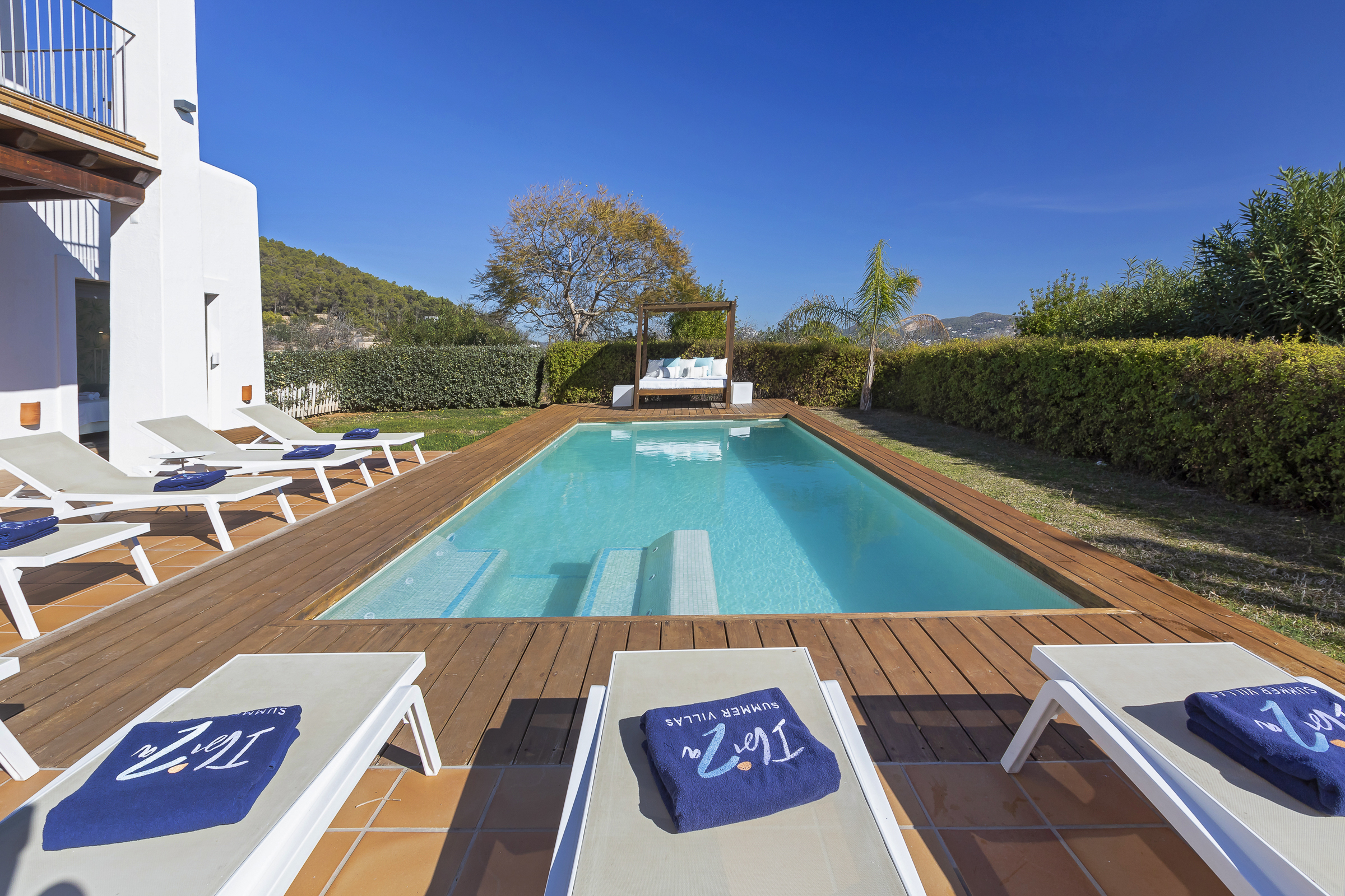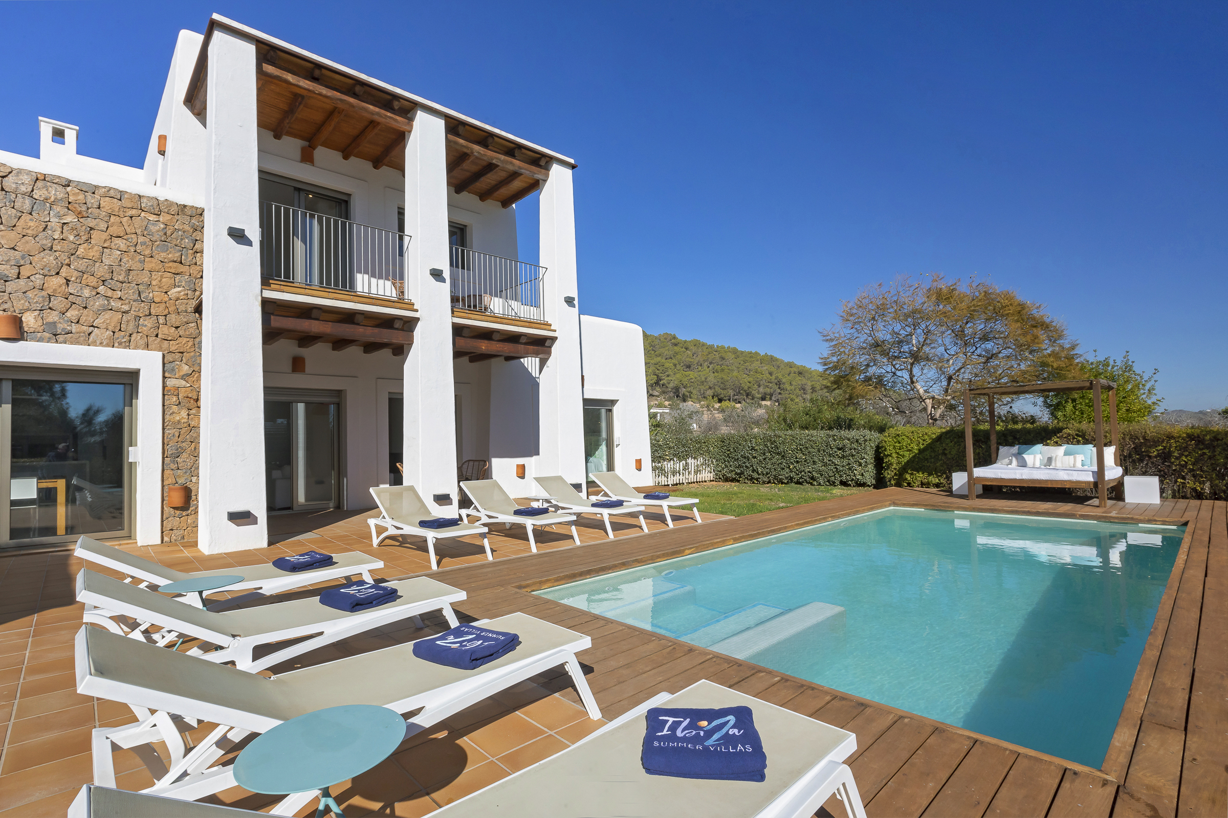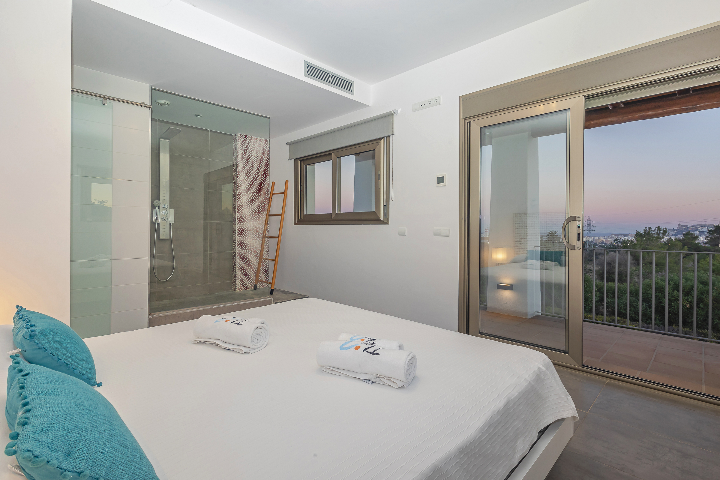 Sarete subito catturati da questa incredibile ed affascinante villa, caratterizzata dalla pietra di Ibiza su muri bianchi. L’ingresso della villa vanta un invitante atrio che vi conduce alla comoda area soggiorno, che include la cucina aperta e la zona pranzo, con vista e accesso sui giardini e la piscina, e una scalinata inondata di luce naturale proveniente dai lucernari incastonati negli alti soffitti.