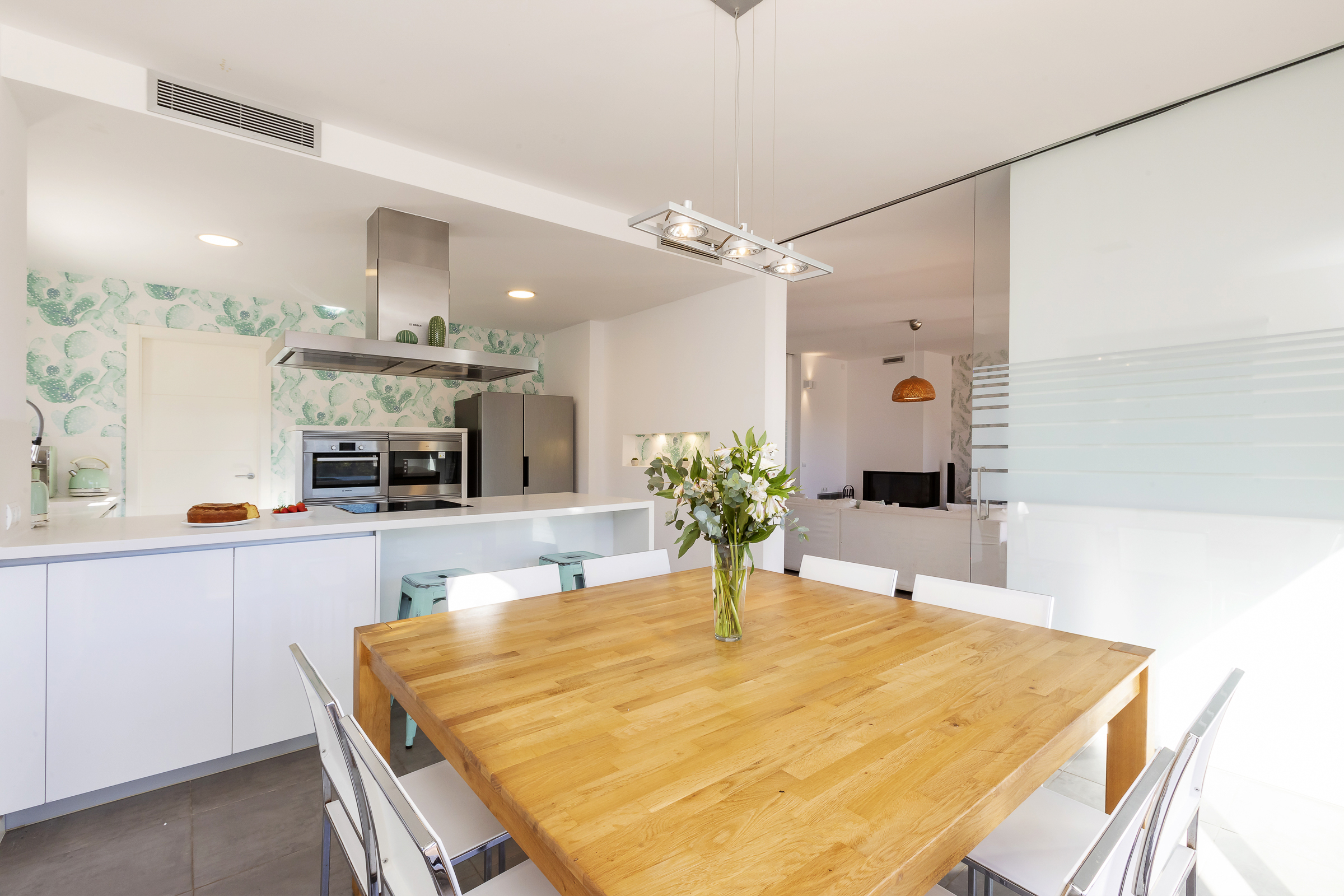 La villa trasuda uno stile moderno ed è stata magnificamente curata per creare un’atmosfera confortevole ed elegante. La cucina moderna presenta ripiani e armadietti bianco lucido, ed è dotata di tutte le comodità desiderabili per passare piacevoli serate. Rilassatevi e divertitevi in compagnia nella zona pranzo, che è tutt’uno con la cucina e regala vedute della piscina e dei giardini esterni.