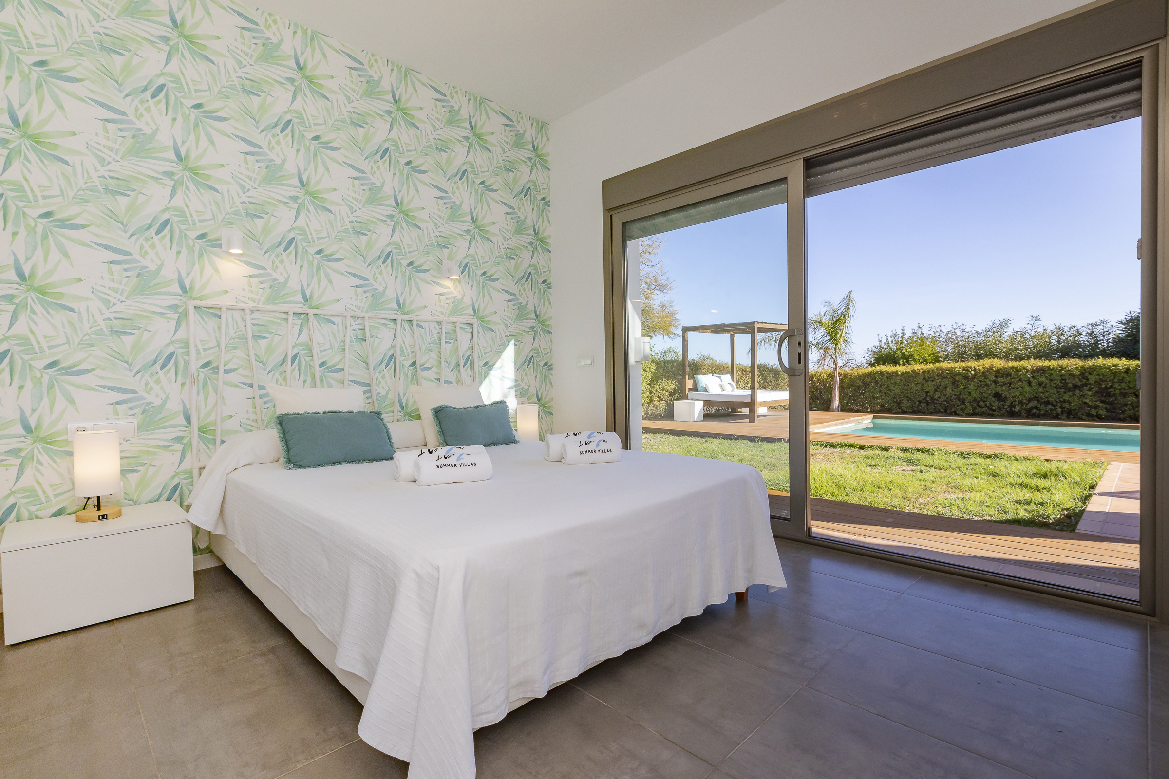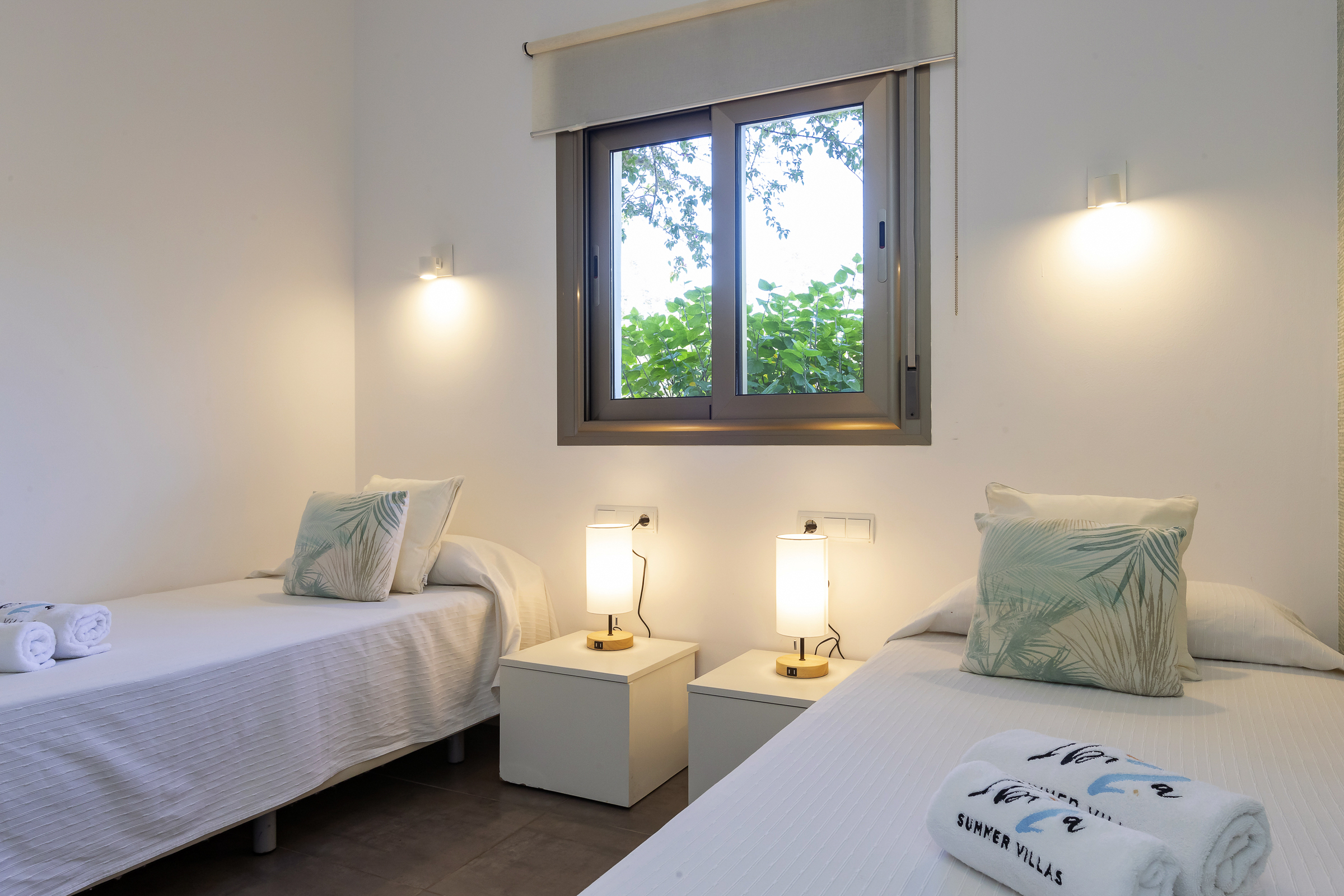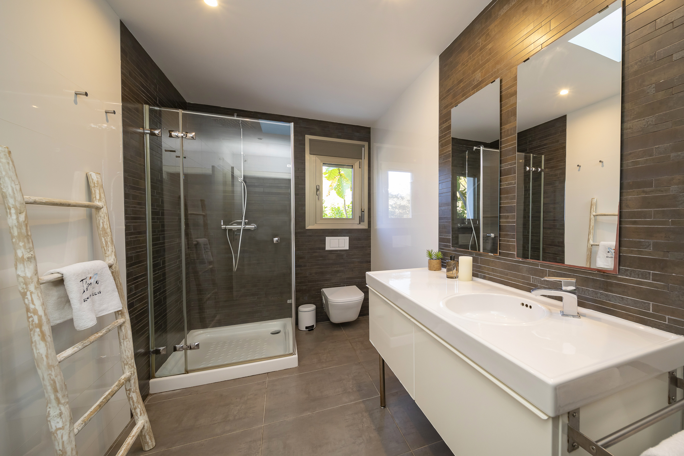 Ses Llaneres è distribuita su tre piani e offre cinque camere da letto, di cui tre camere matrimoniali e due camere doppie, insieme a quattro bagni ben arredati. La prima camera matrimoniale è dotata di un bagno interno privato con vasca idromassaggio, che regala la massima esperienza di relax. Al pianterreno, un’altra camera matrimoniale presenta un proprio spazio soggiorno e un bagno. La camera padronale e suite al piano attico include una cabina armadio, bagno interno e una terrazza privata con viste mozzafiato sull’area circostante, nonché sui giardini e la piscina.