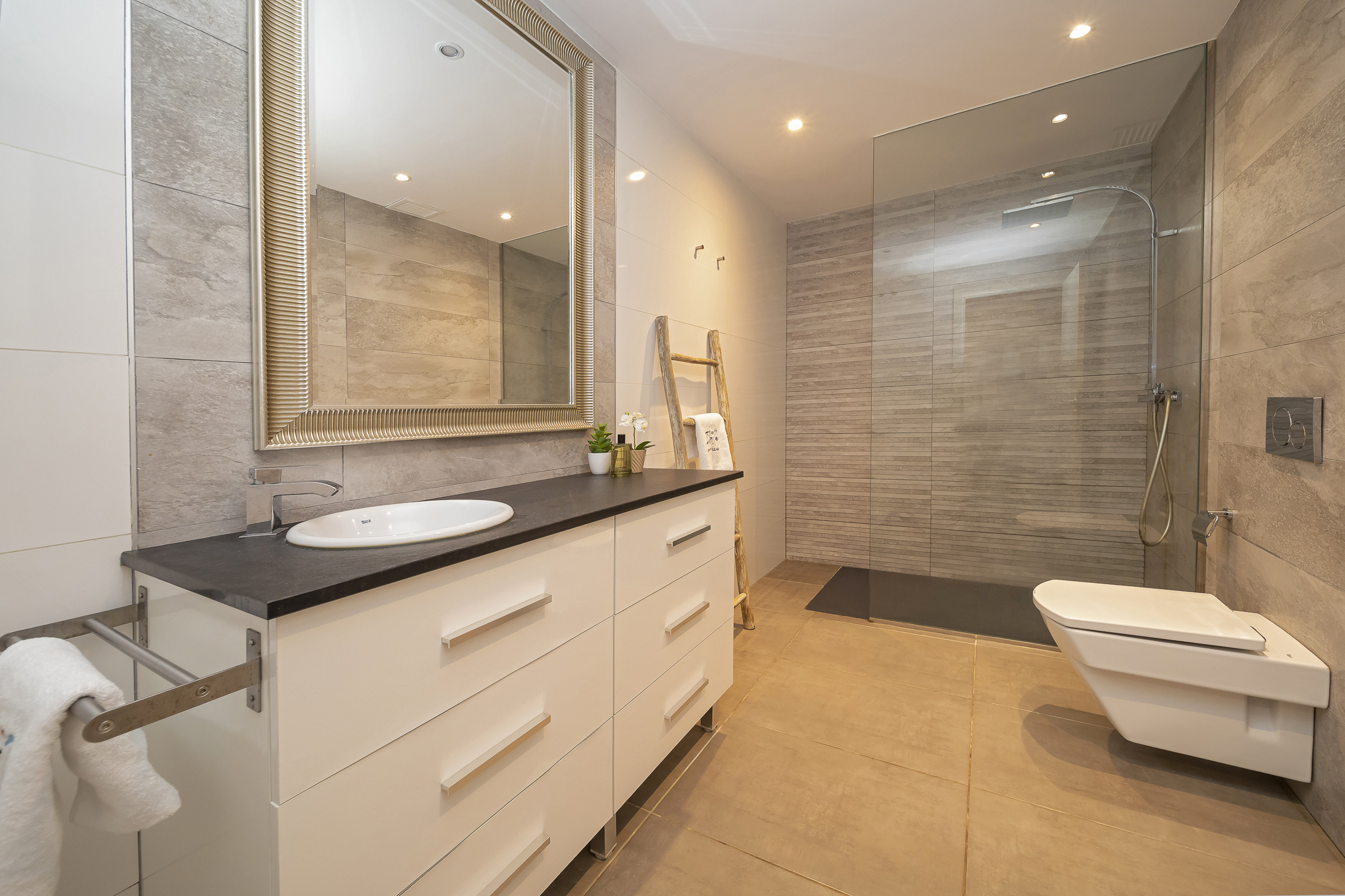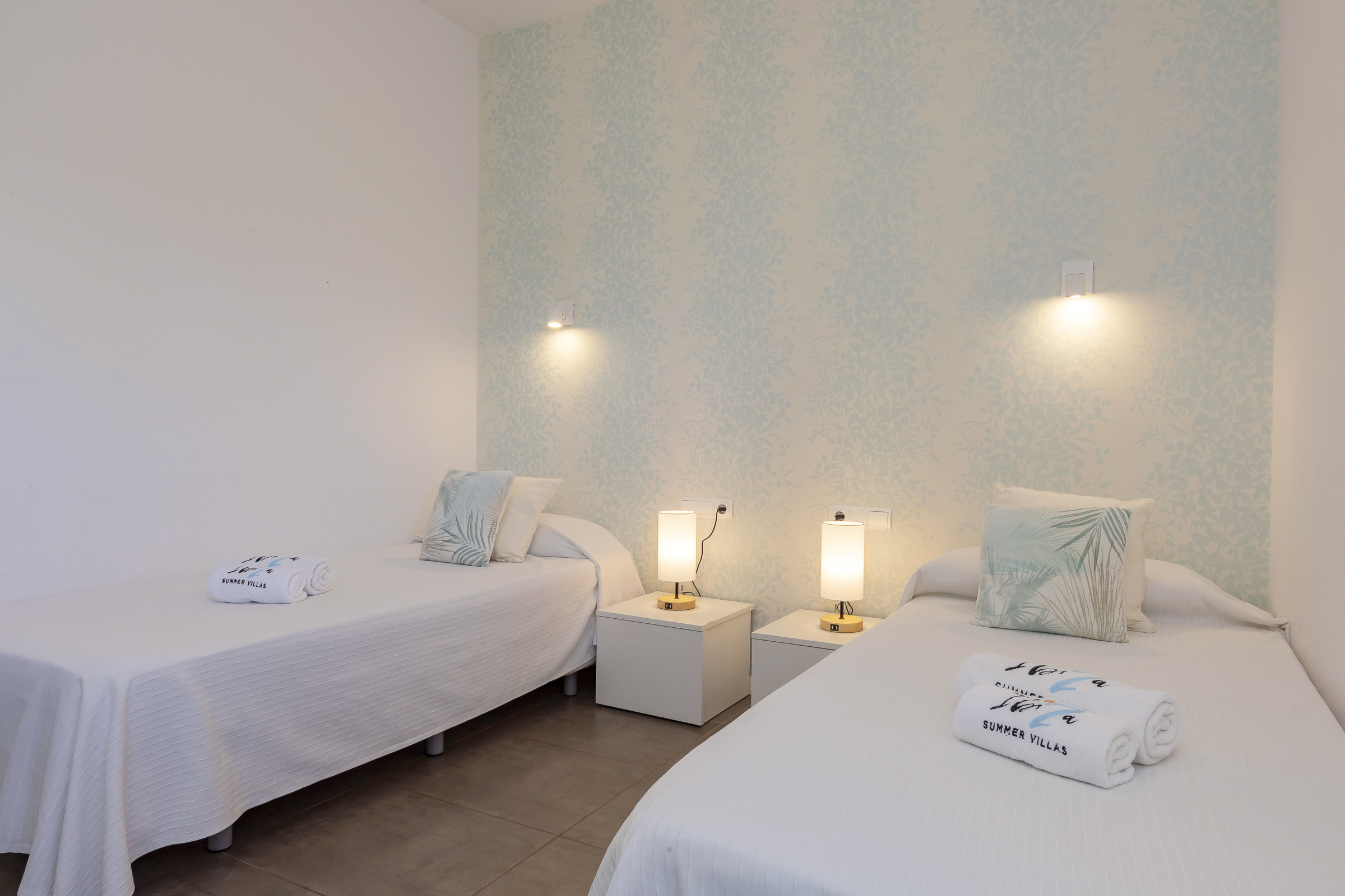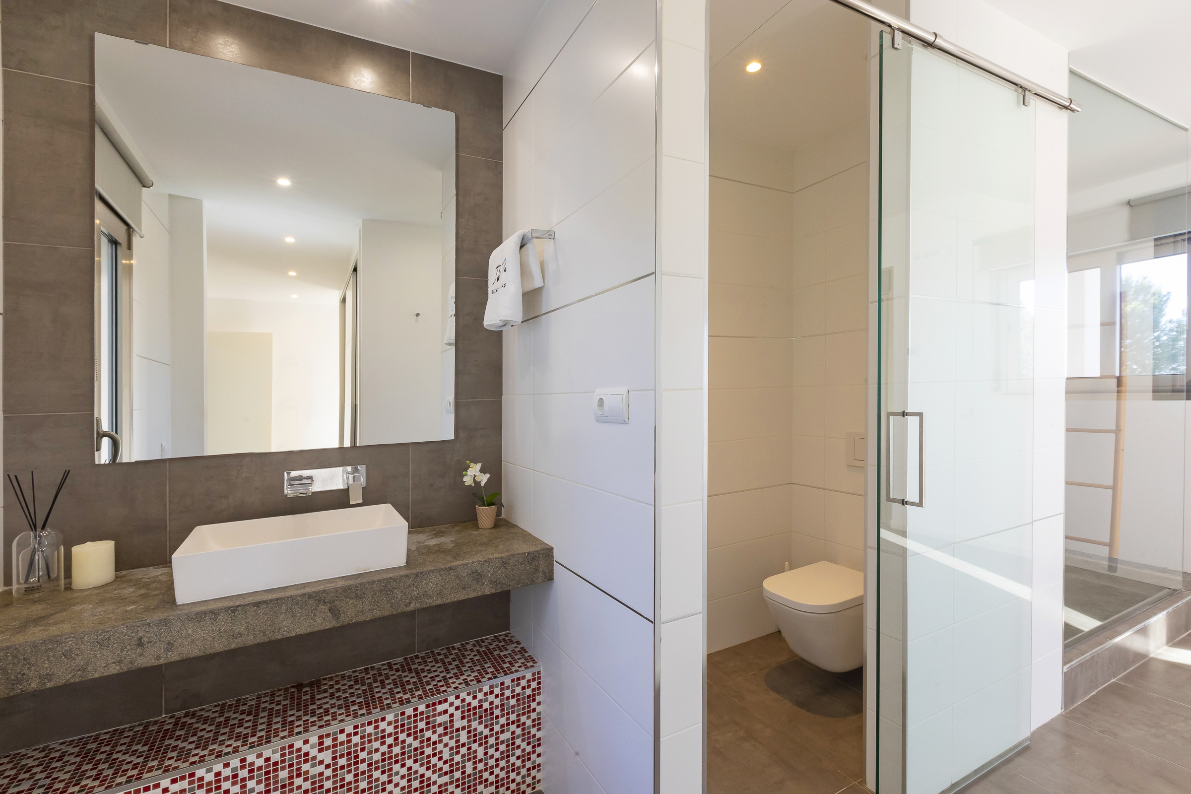 Ses Llaneres è distribuita su tre piani e offre cinque camere da letto, di cui tre camere matrimoniali e due camere doppie, insieme a quattro bagni ben arredati. La prima camera matrimoniale è dotata di un bagno interno privato con vasca idromassaggio, che regala la massima esperienza di relax. Al pianterreno, un’altra camera matrimoniale presenta un proprio spazio soggiorno e un bagno. La camera padronale e suite al piano attico include una cabina armadio, bagno interno e una terrazza privata con viste mozzafiato sull’area circostante, nonché sui giardini e la piscina.