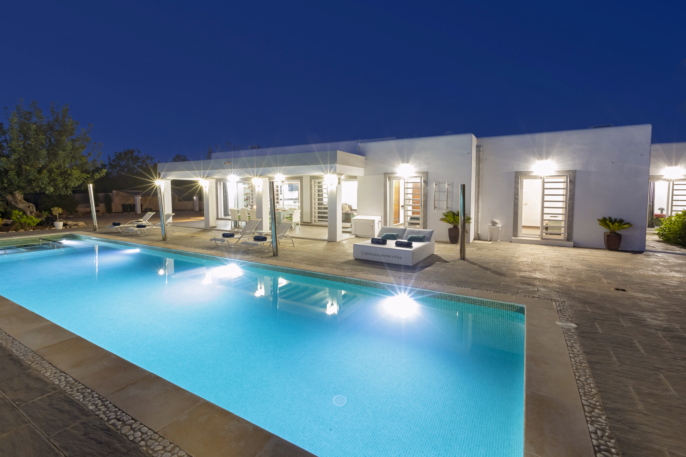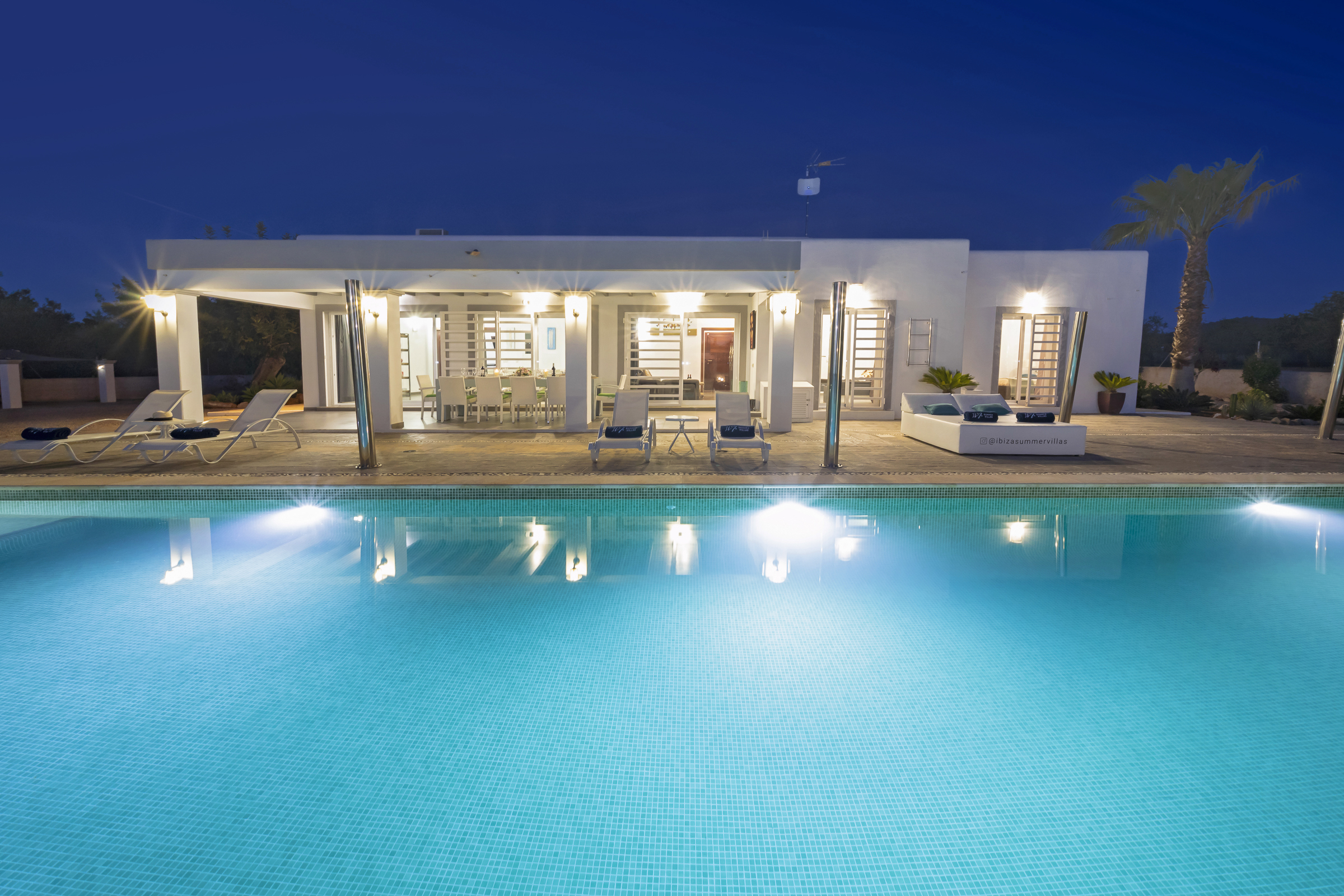 In questa villa si adotta veramente la vita all’aperto, con un’area cucina esterna, spazi comuni per intrattenersi, lettini prendisole per abbronzarsi e una zona pranzo coperta dove potete godere di lunghe cene con i vostri cari, mentre assistete ai famosi tramonti di San Antonio.