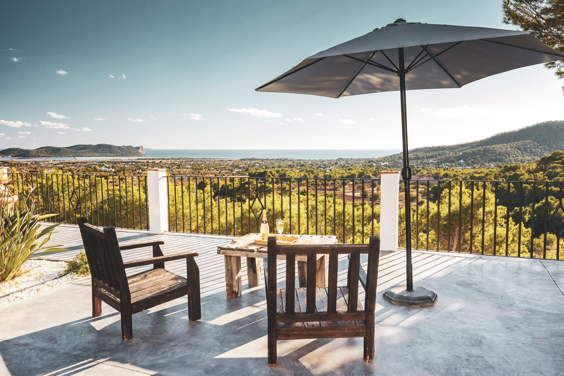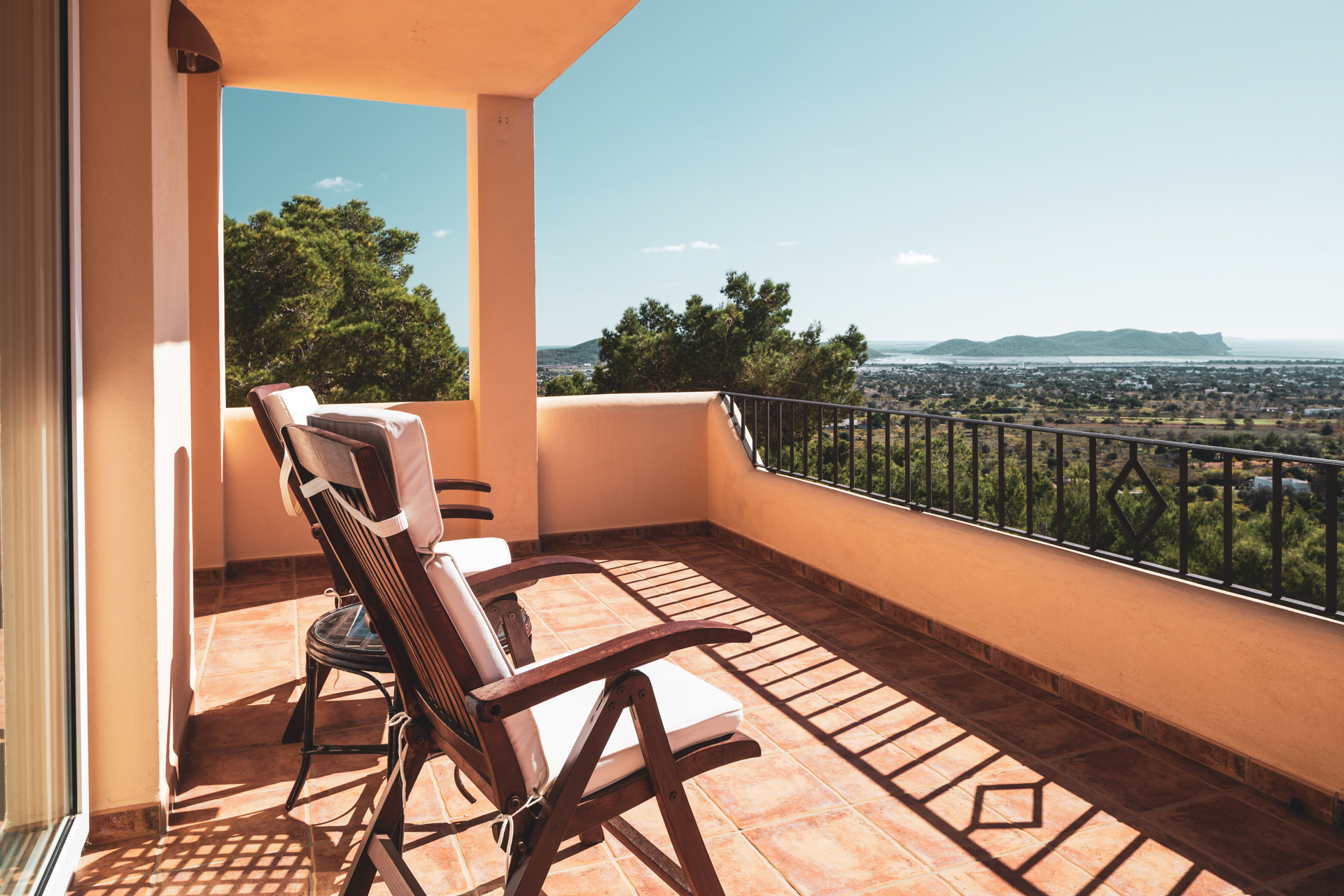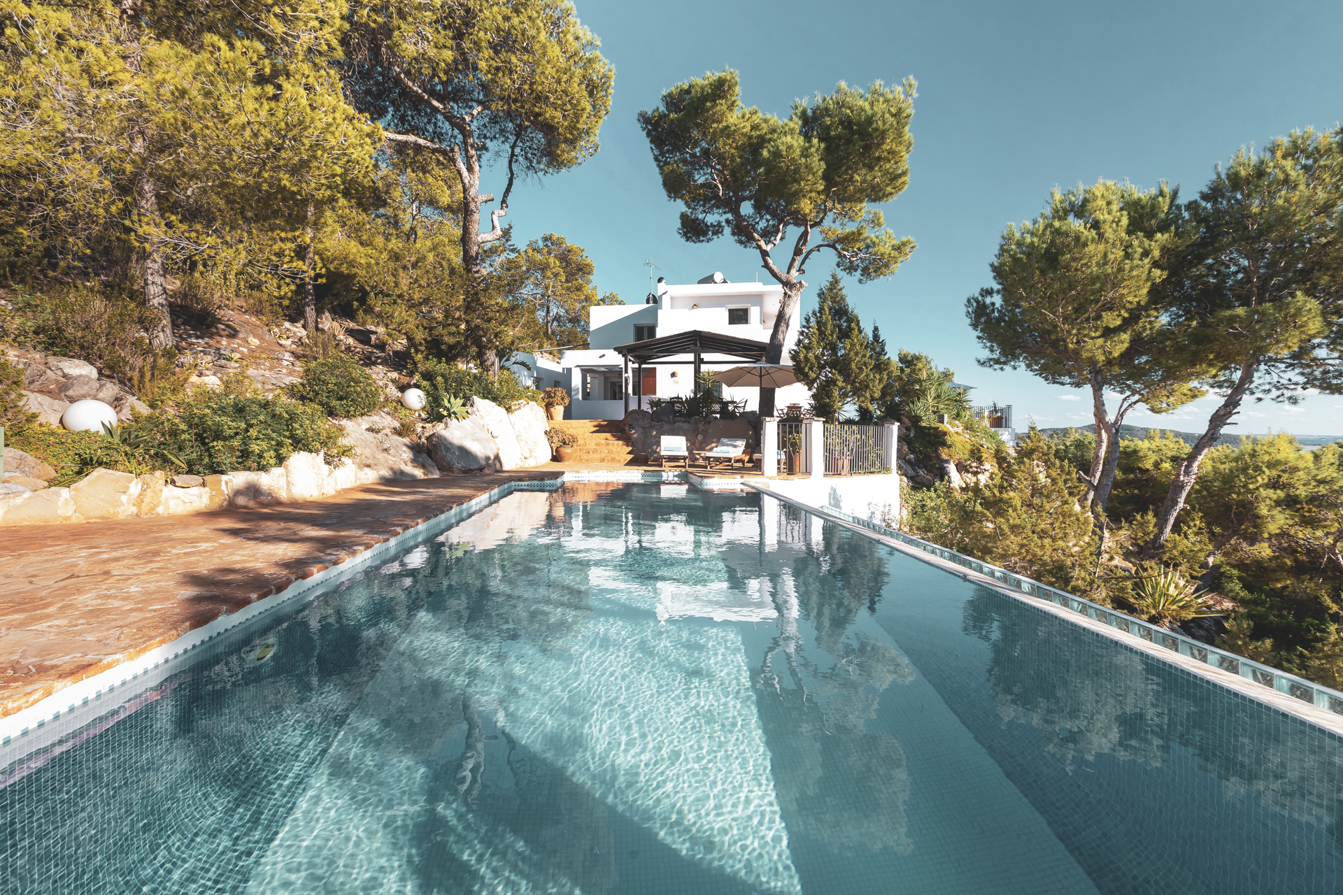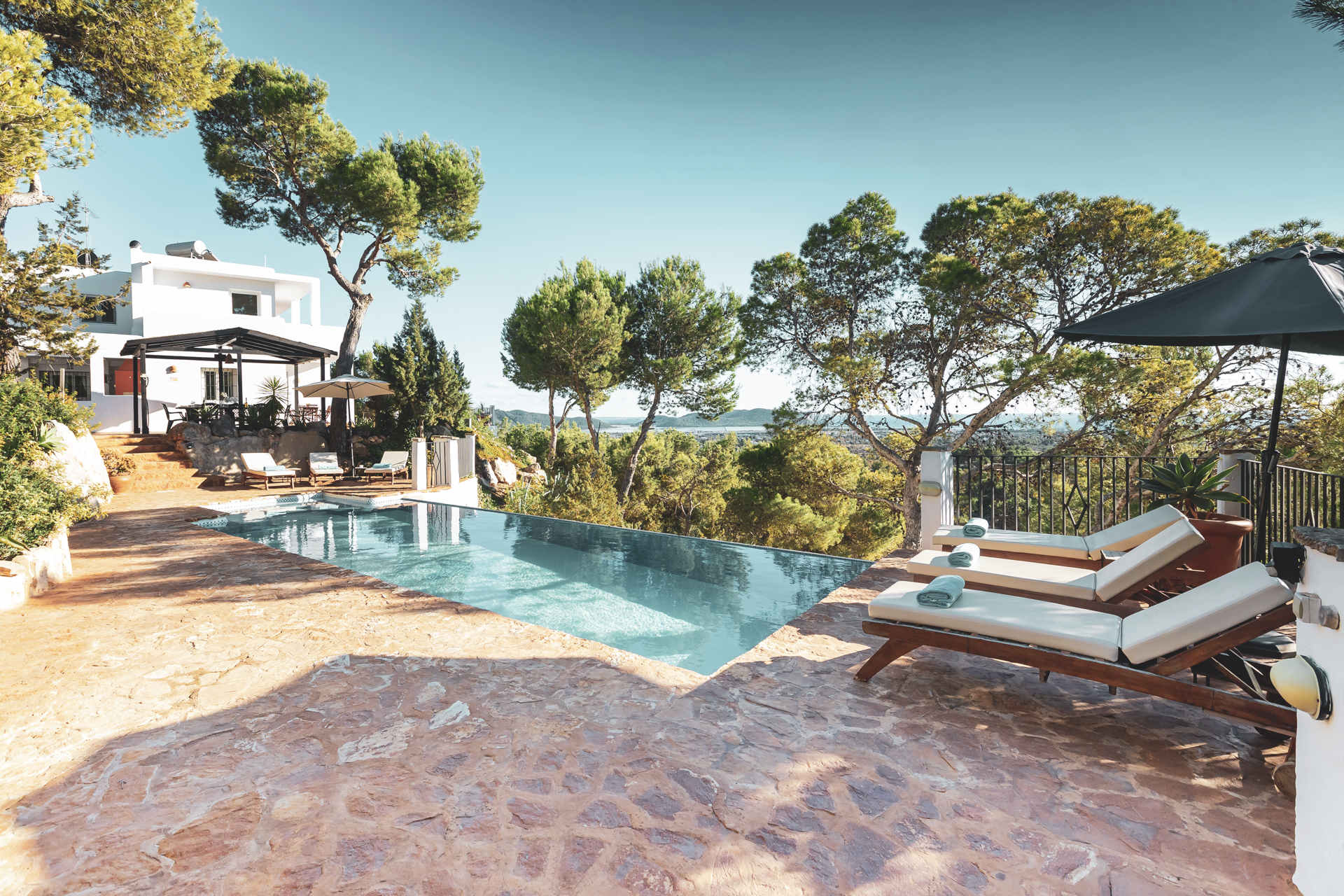 Fantastic 5 bedroom villa near Ibiza Town, includes 1 double rooms and 4 twin rooms. With infinity pool and breathtaking panoramic sea views across to Salinas. With wifi, air conditioning, bbq and more.