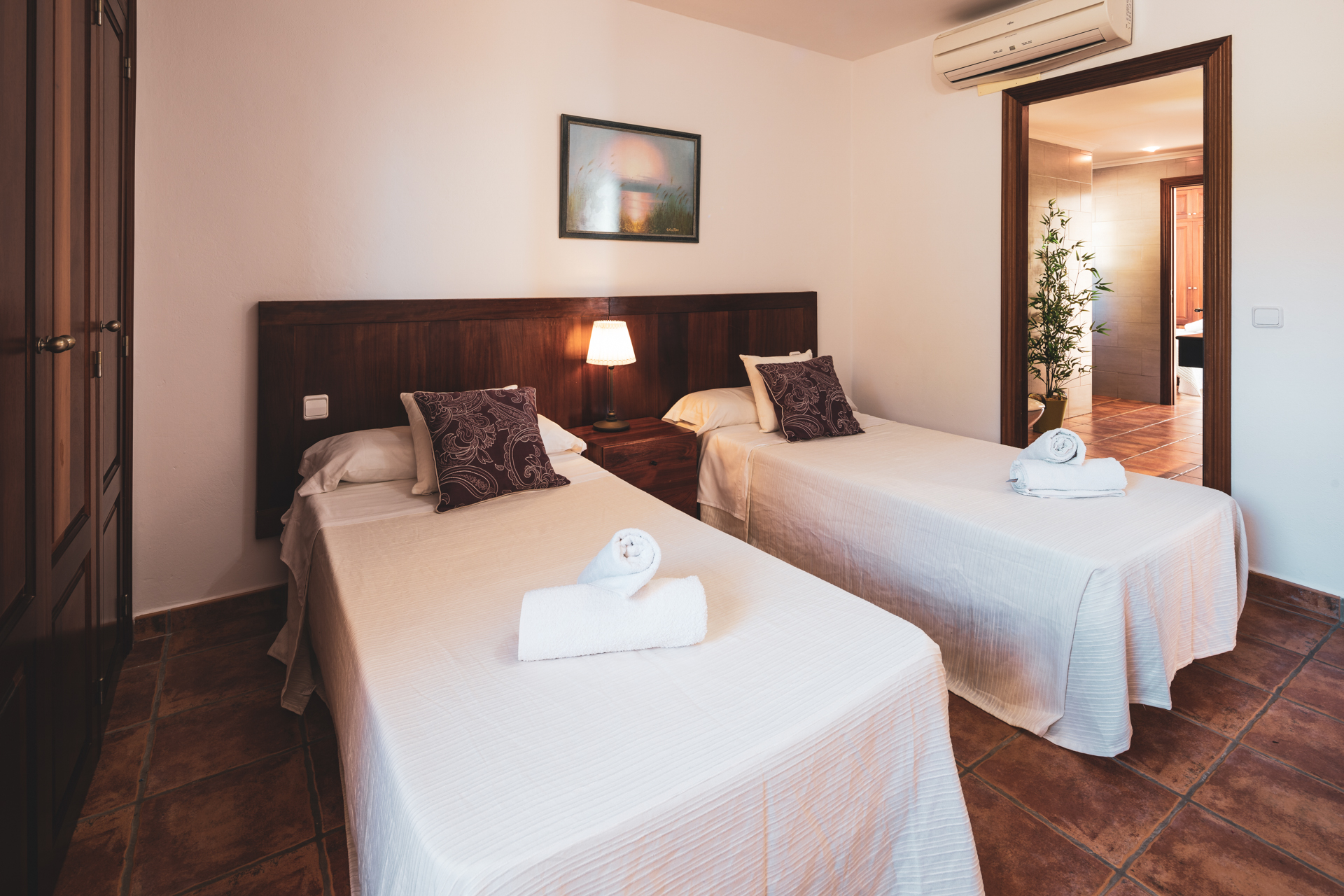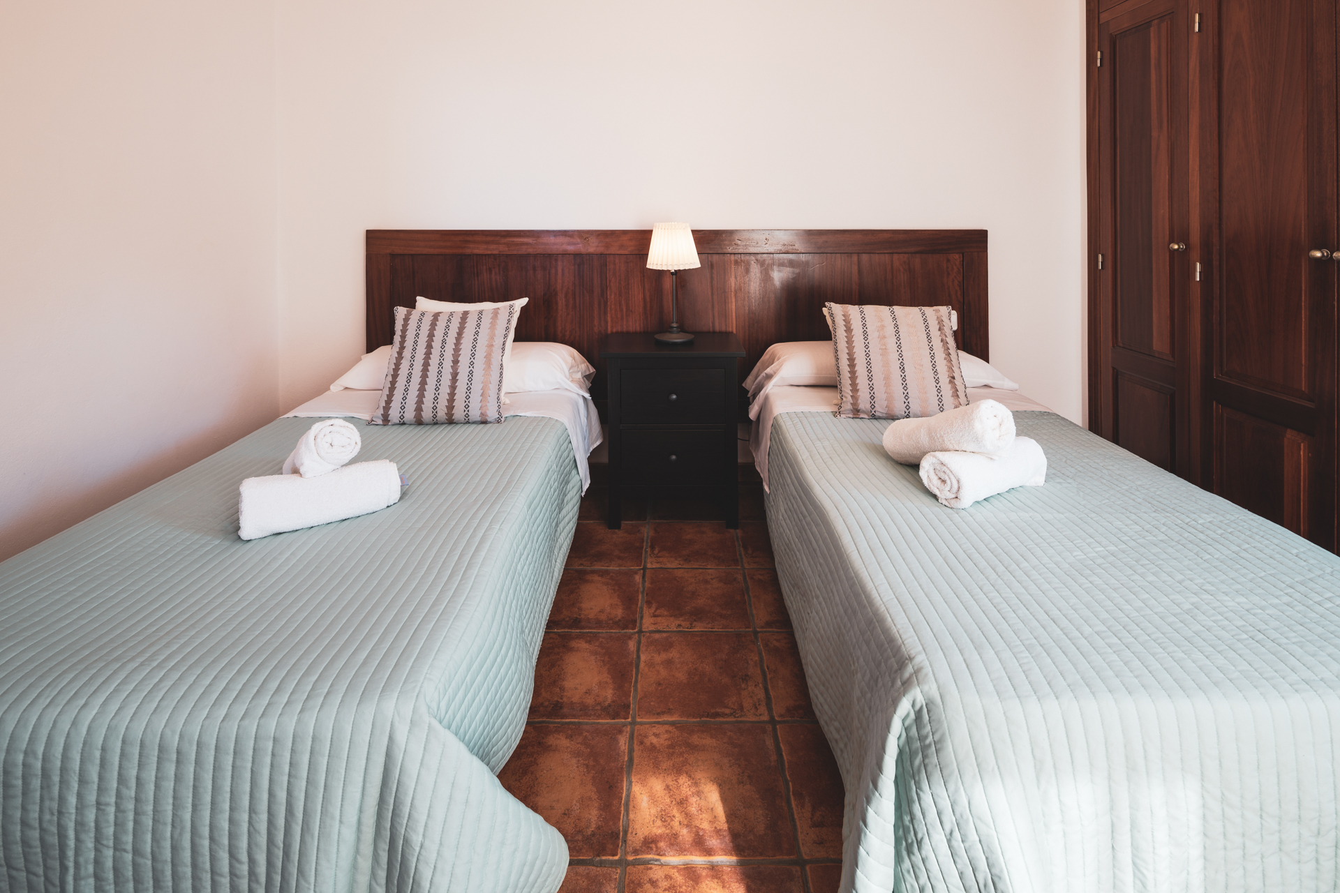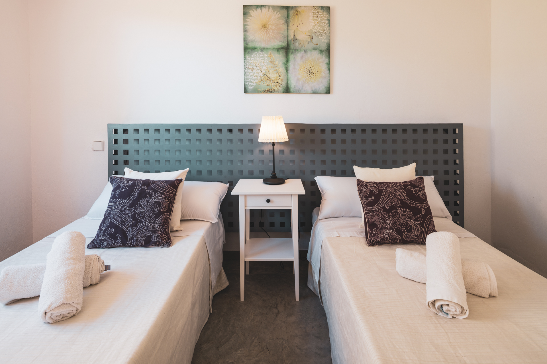 Just off from the kitchen there is a beautiful courtyard overlooking the pool which has a large BBQ and an area to sit down and catch up in the cool shade. Across from the courtyard, the outside annexe houses the other twin bedroom and bathroom.