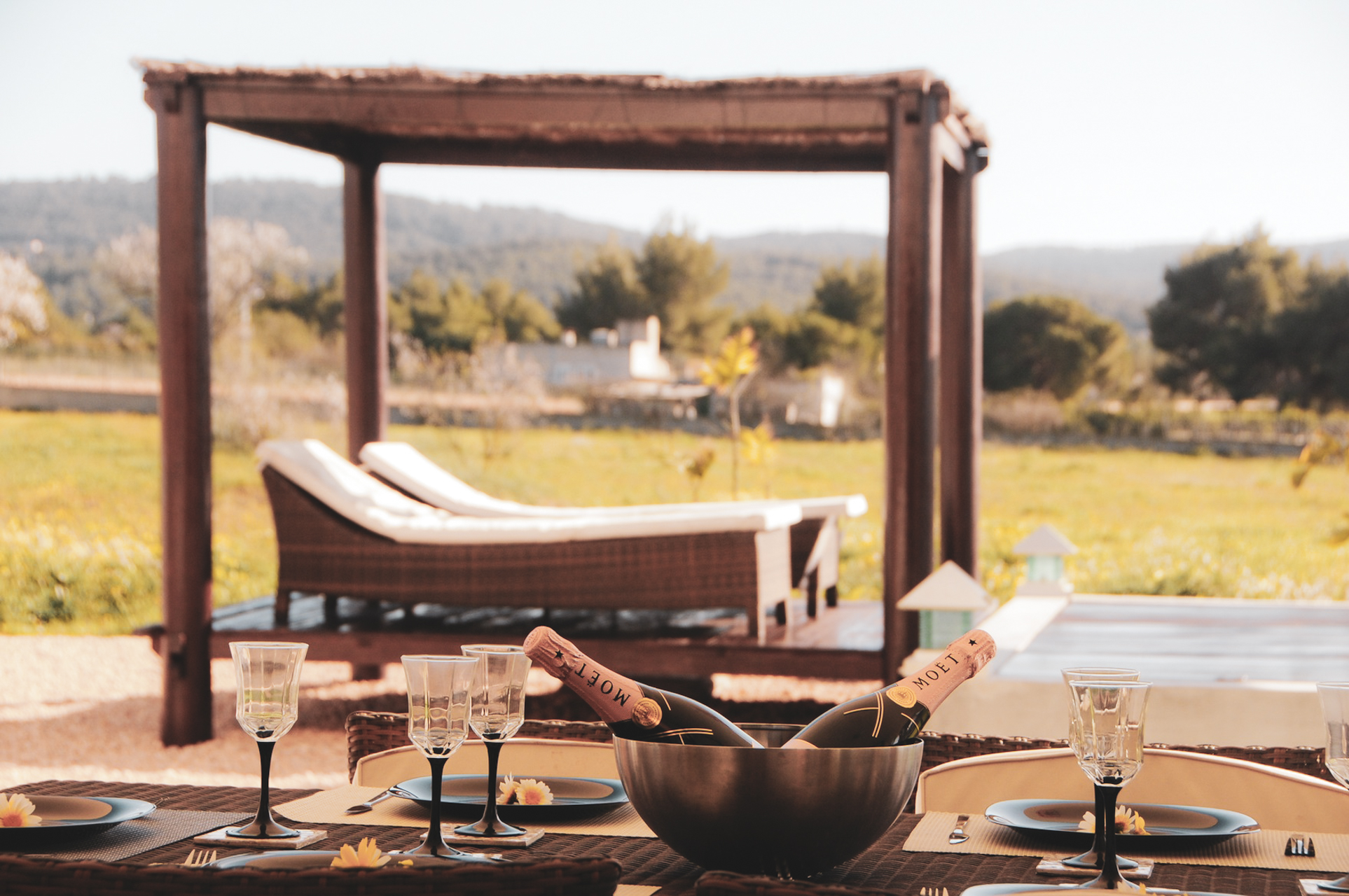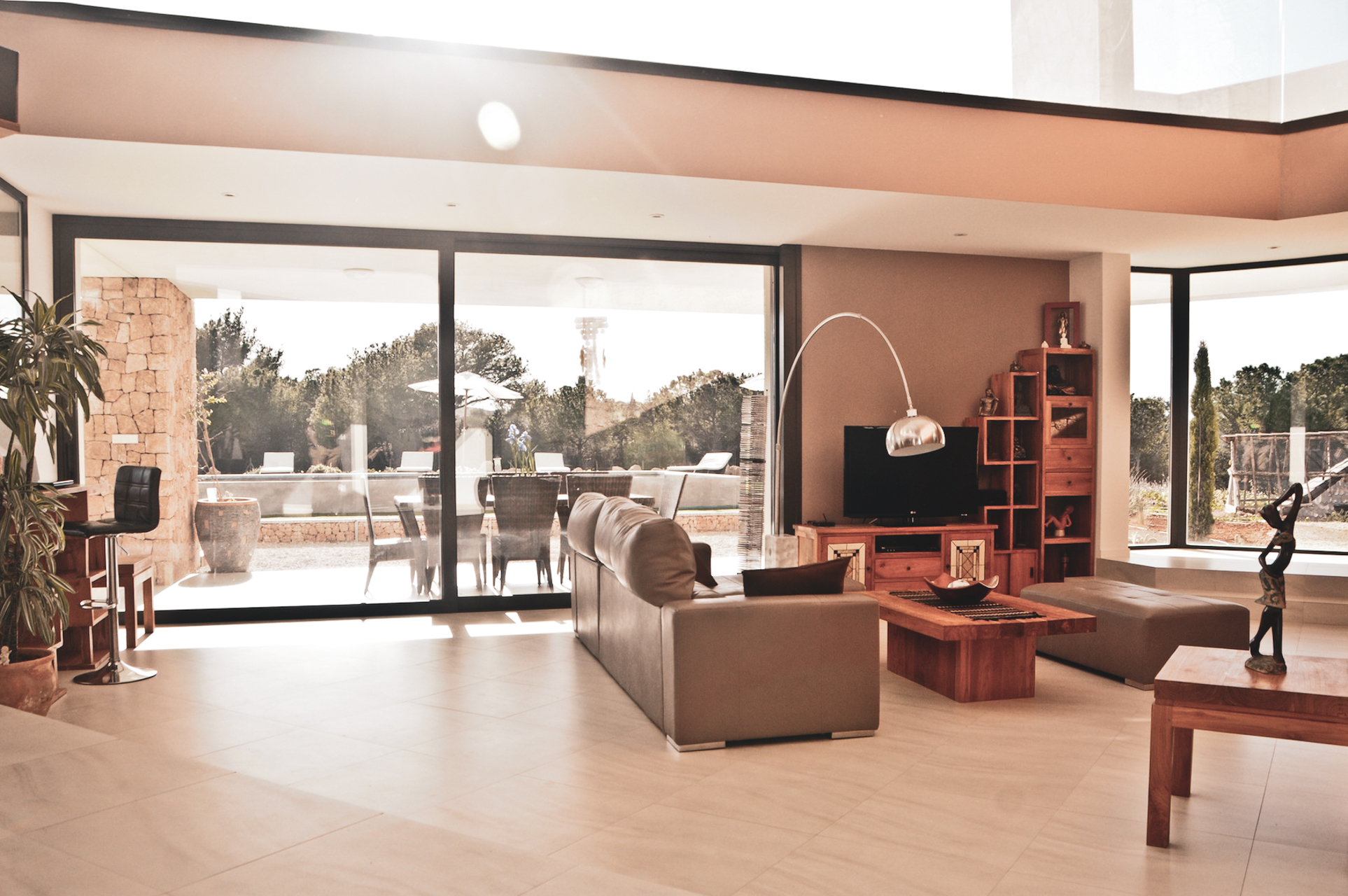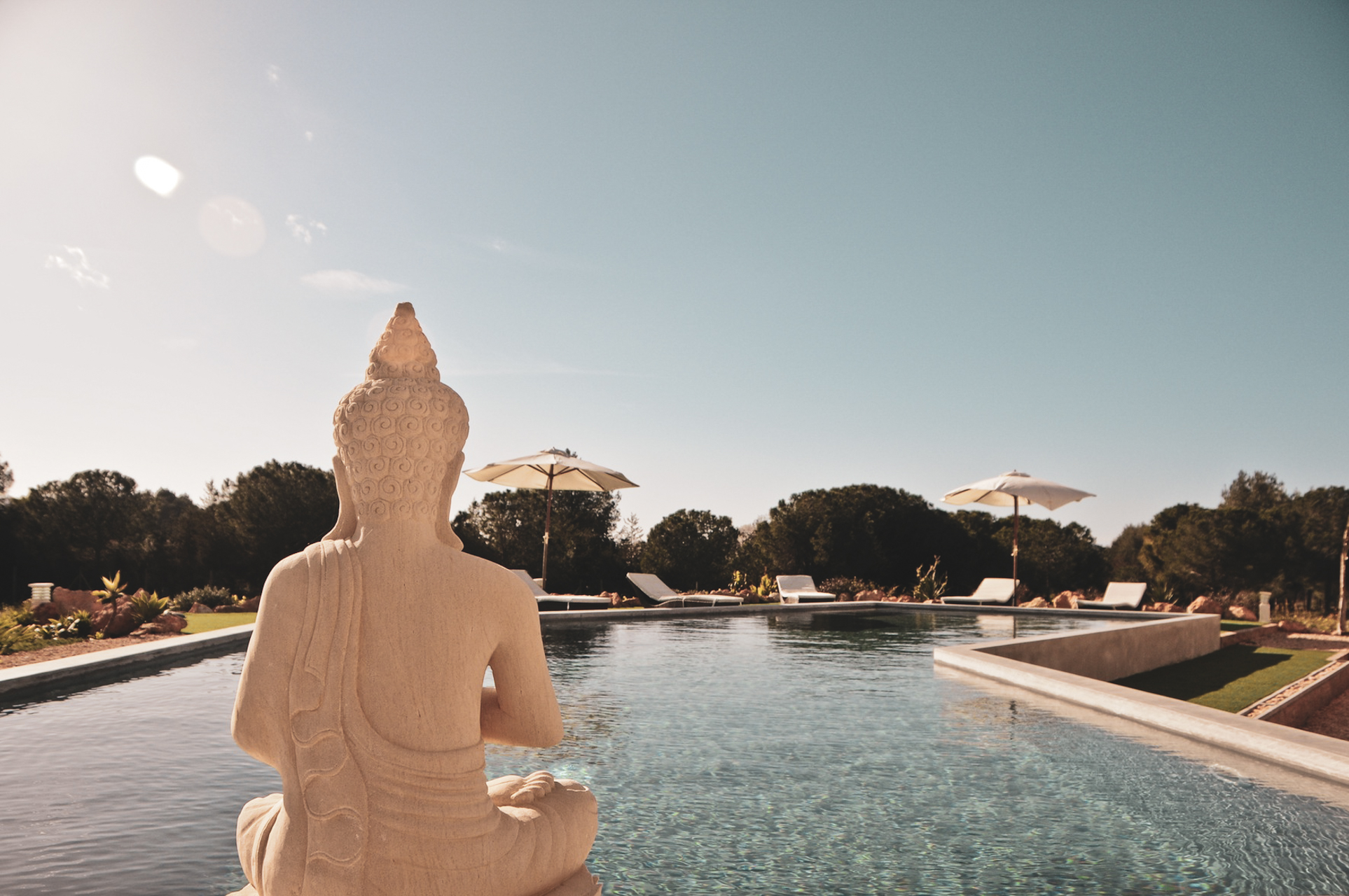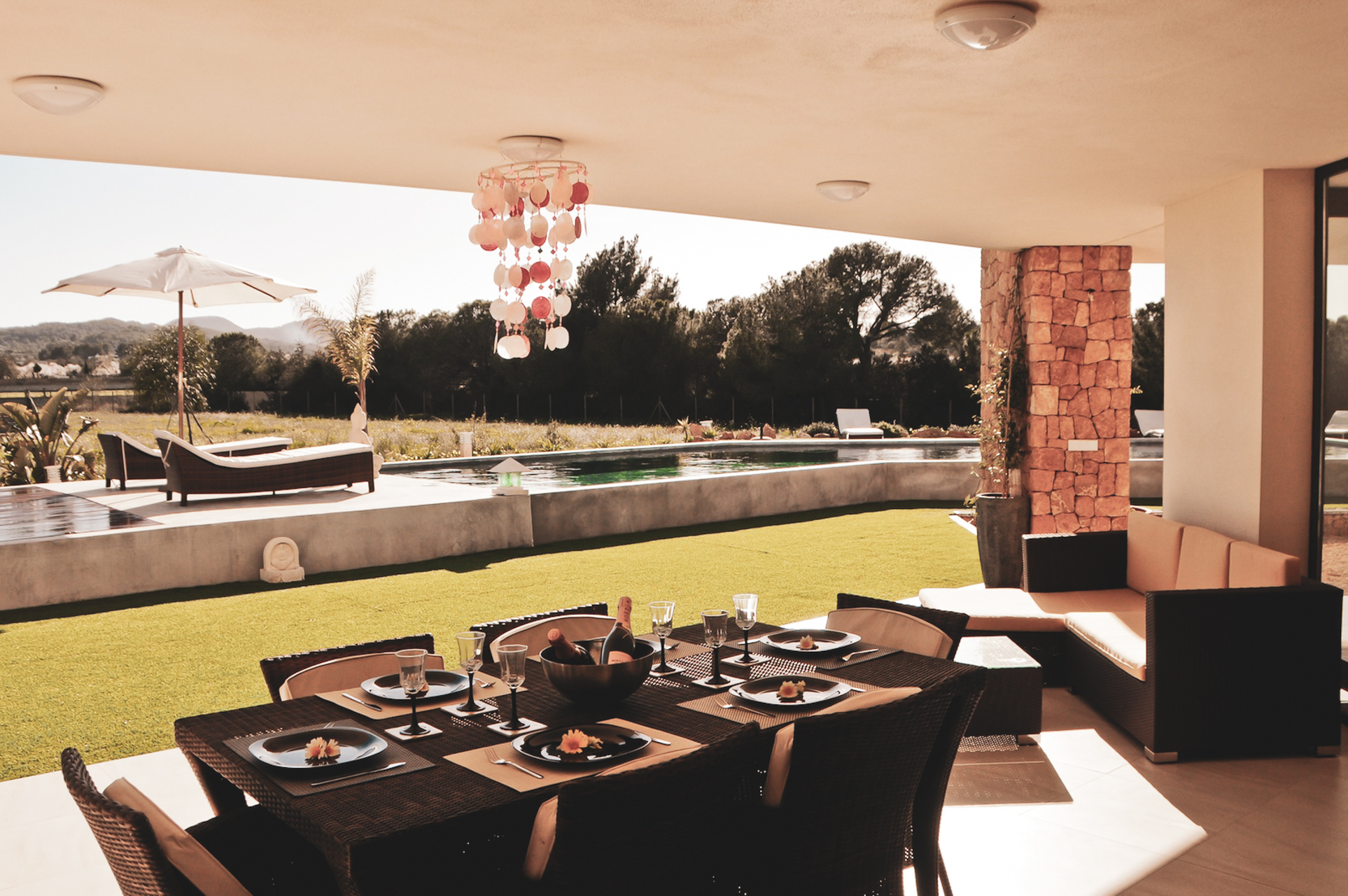 Buiten is het zwembad van de villa gewoonweg prachtig - dit is een van de grootste privézwembaden in Ibiza! Omringd door ligstoelen en Balinese cabana's, een nabijgelegen barbecue en beschutte eethoek, nodigt deze villa u uit om te relaxen en te chillen in stijl.