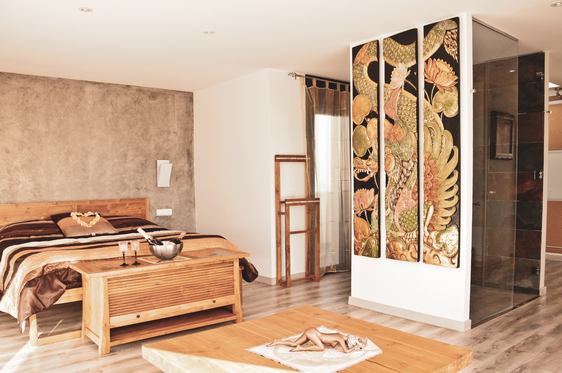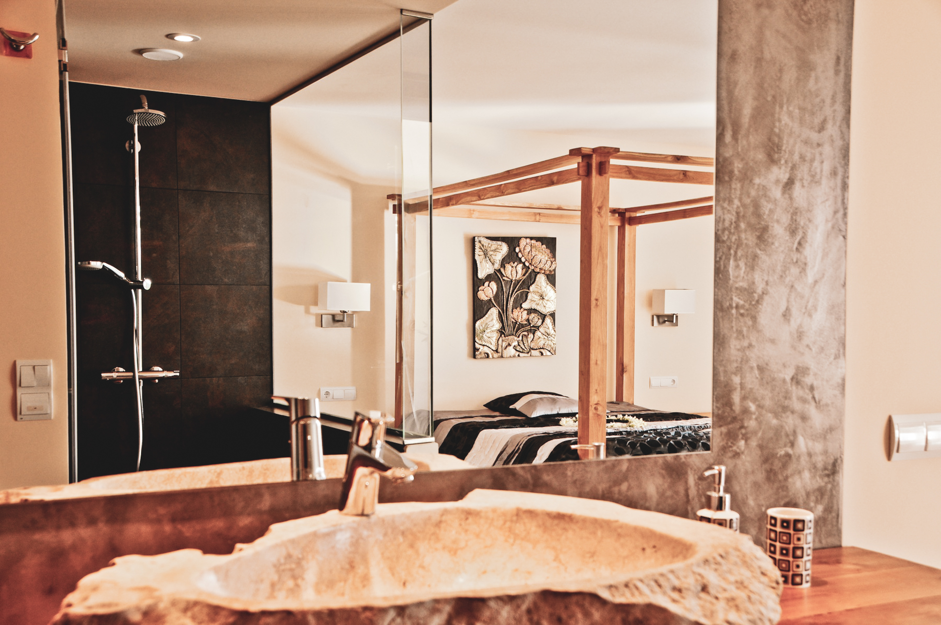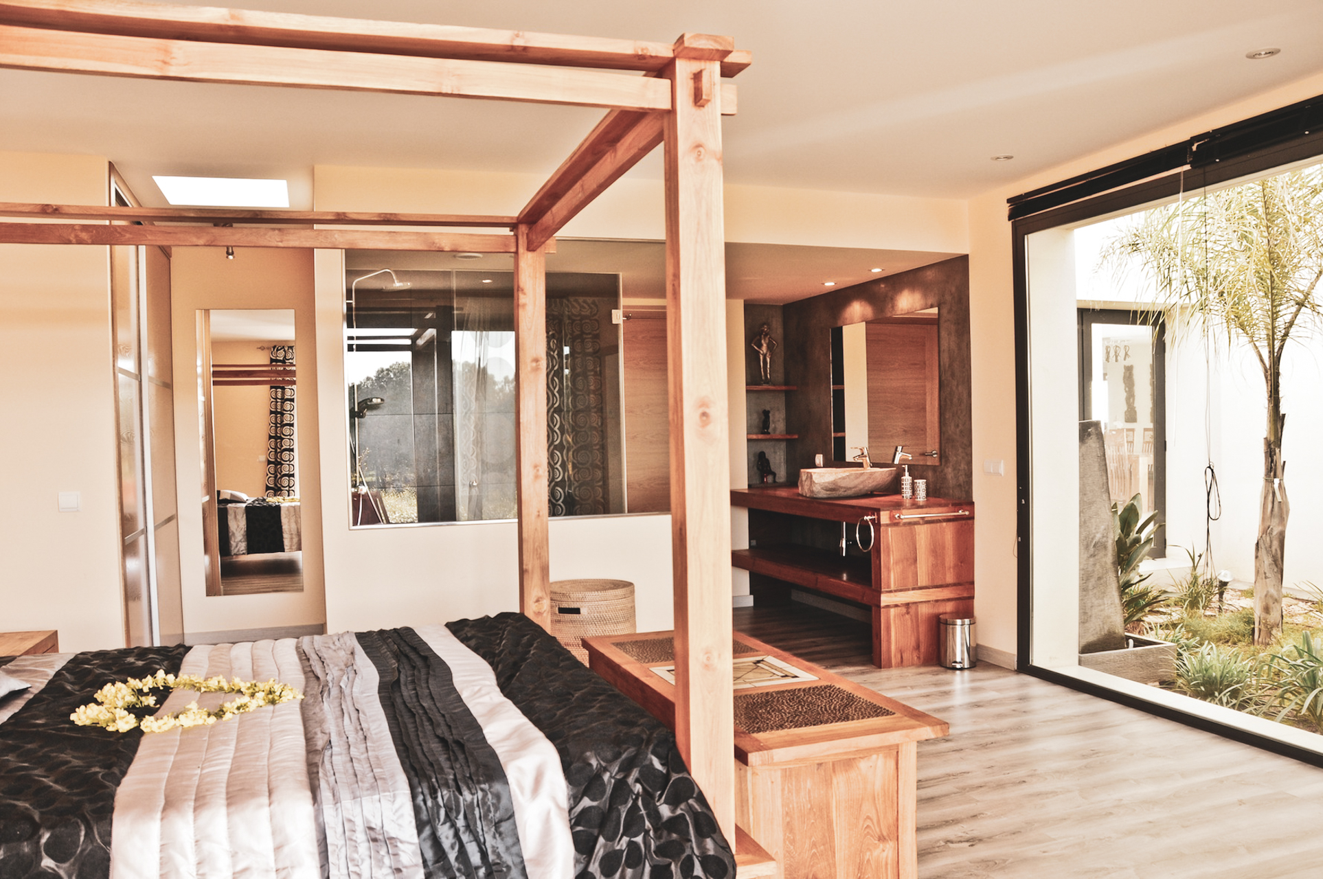 Er is een grote tweepersoons slaapkamer gelegen op deze begane grond, met en-suite badkamer en inloopkast. Vlakbij is nog een privé-kamer met een comfortabele slaapbank voor twee personen indien nodig. Er is ook een toiletruimte op deze benedenverdieping.