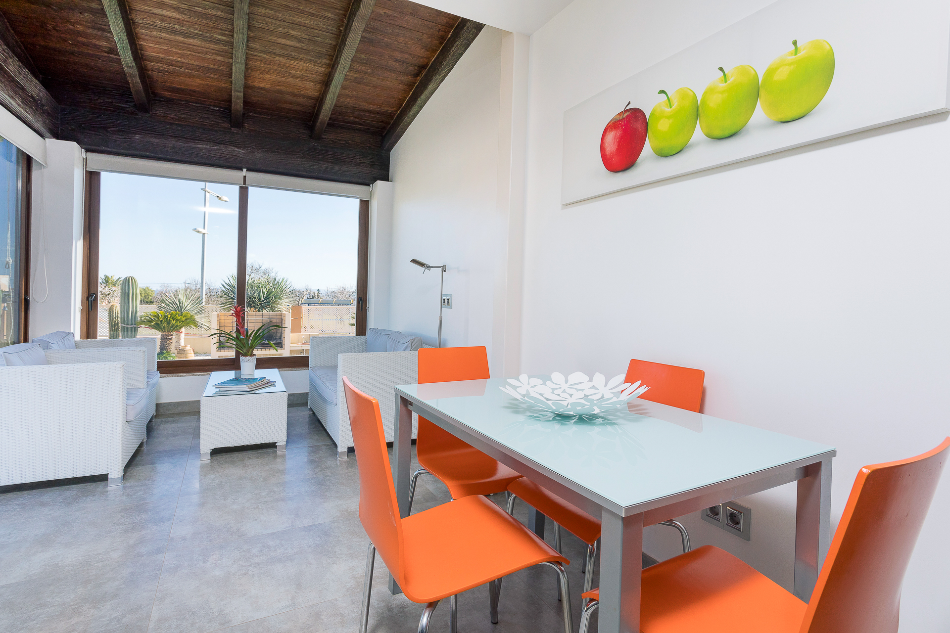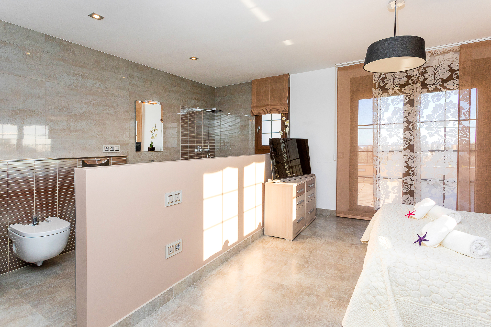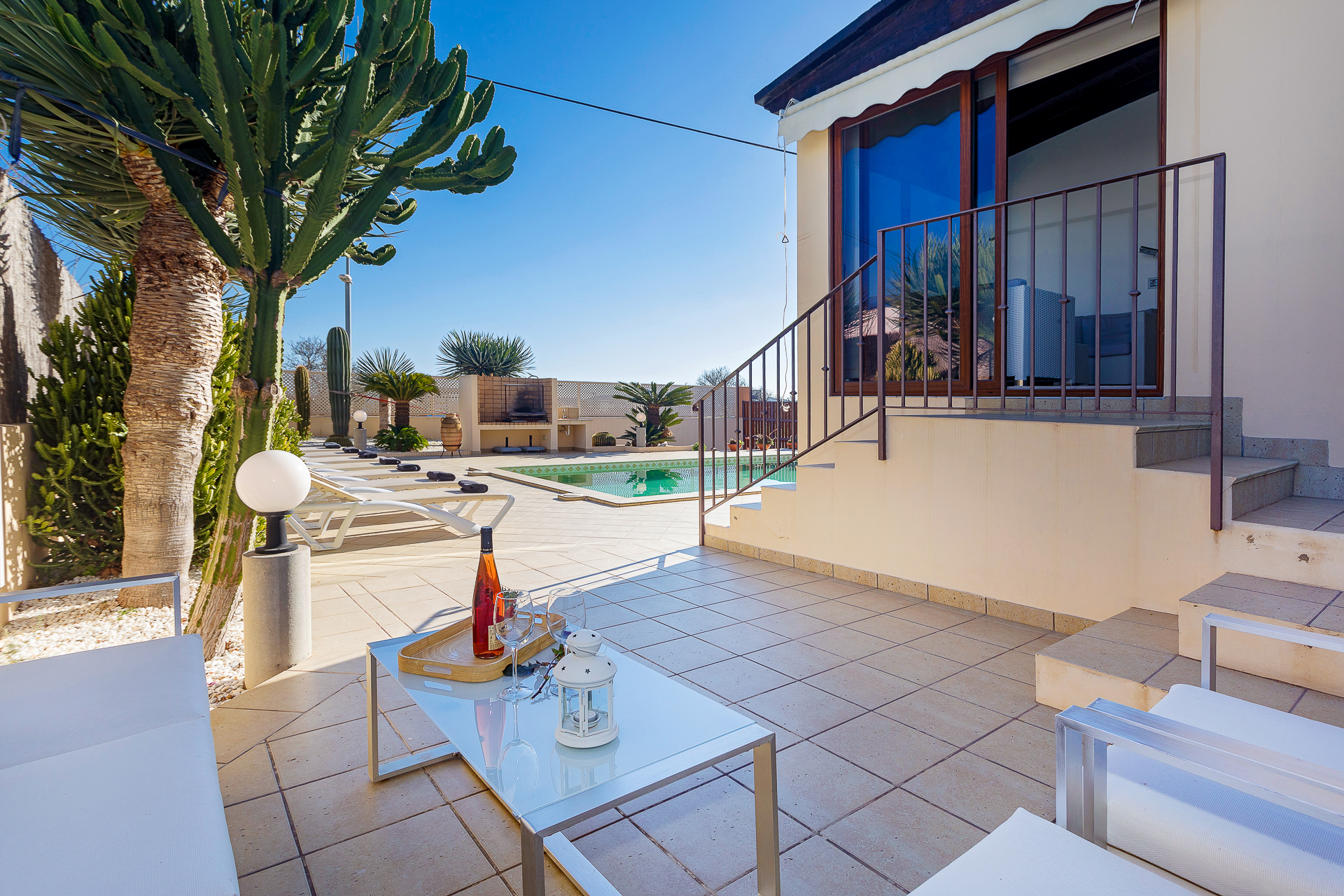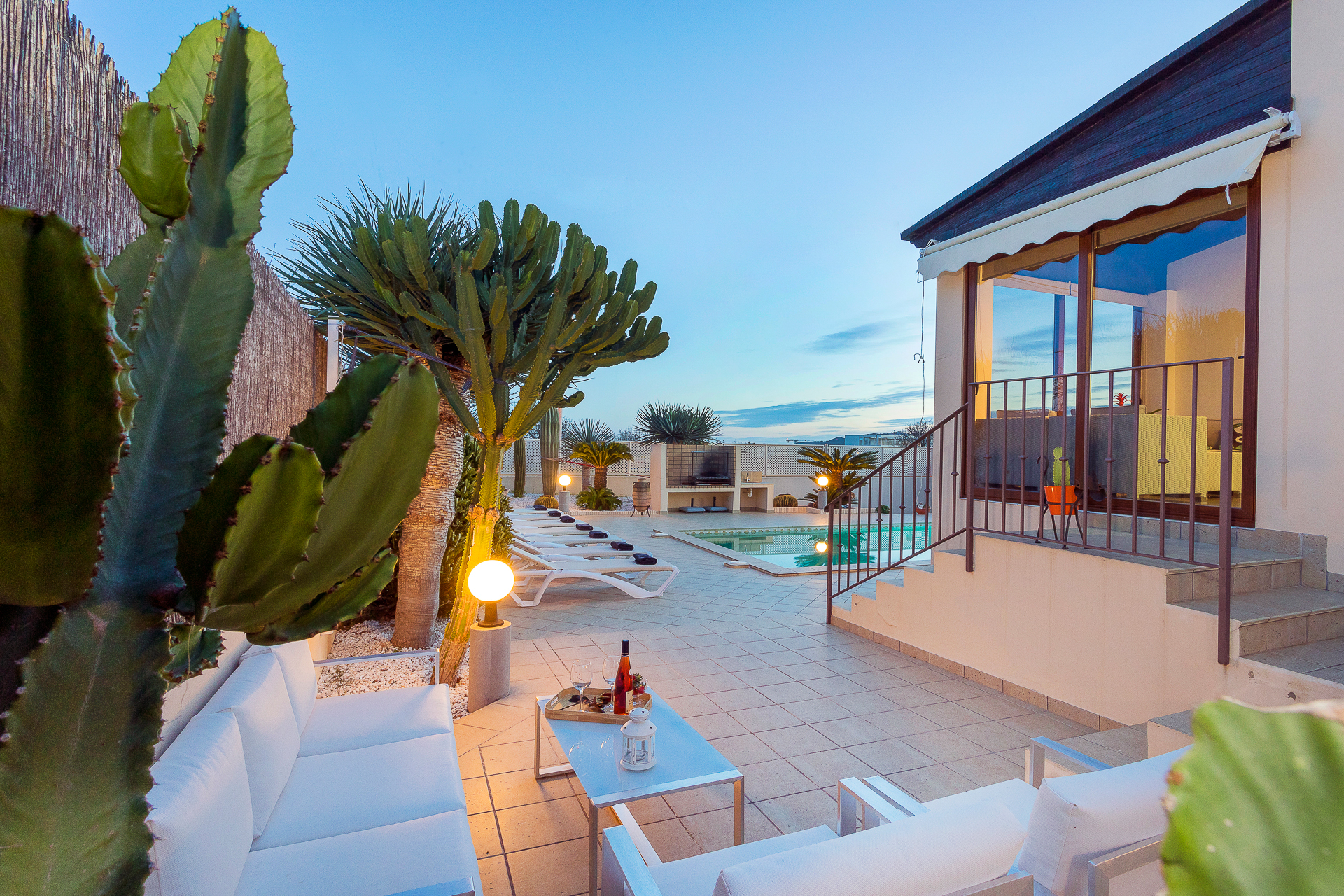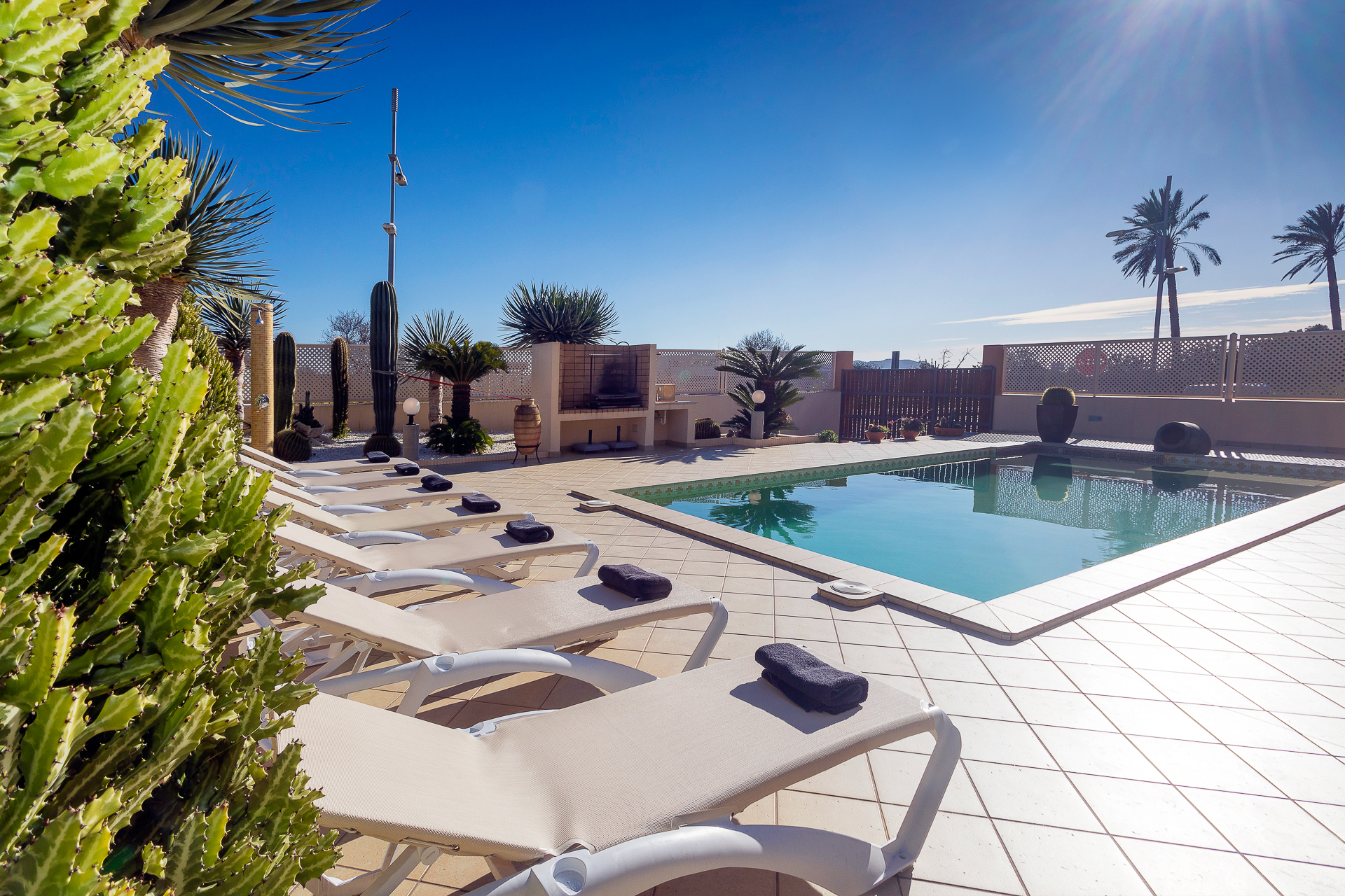 Het buitenterrein is helemaal af, voorzien van verschillende eetgedeeltes zodat u buiten heerlijk kunt dineren. Verder vindt u buiten nog verschillende chill-out gedeeltes met zitbanken waar u even kunt ontsnappen aan de hitte van de dag en een grote BBQ gelegen bij het zwembad welke ideaal is voor ultiem vermaak met uw vrienden of familie. Dit alles, én het feit dat de villa slechts op een korte afstand van Ibiza-stad is gelegen – u kunt gemakkelijk van de villa naar het centrum van Ibiza, de plaatselijke hypermarkt en zelfs Playa d’en Bossa lopen, dus het huren van een auto is absoluut niet essentieel– staat garant dat u nog meer plezier aan uw vakantie beleeft!