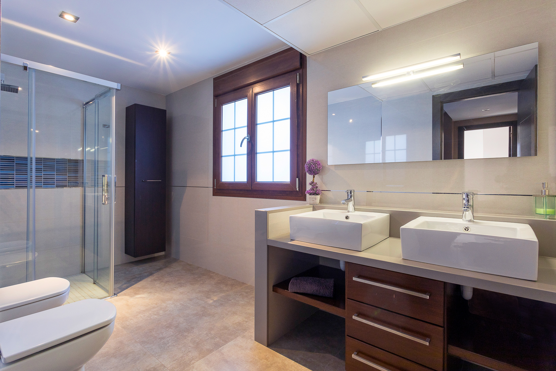 Alle badkamers genieten van een prachtig design en zijn compleet uitgerust met dubbele wastafels en een grote inloopdouche.
