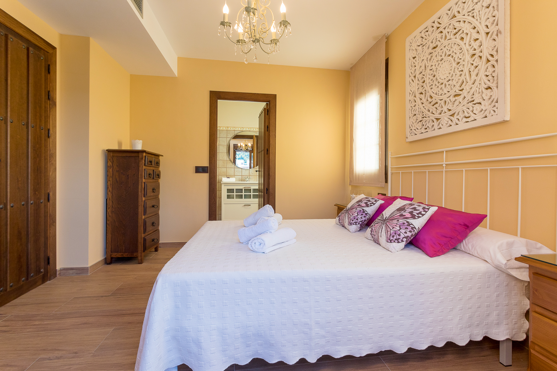 In de hoofdvilla, het 2e woongedeelte, bevinden zich de overige 4 slaapkamers, waaronder de hoofdslaapkamer, compleet uitgerust met een tweepersoonsbed en open ensuite badkamer.  Daarnaast heeft de hoofdvilla nog 2 slaapkamers met tweepersoonsbed en 1 slaapkamer met ieder 2 eenpersoonsbedden. Verder bevinden zich in deze villa ook nog twee badkamers welke u kunt gebruiken.