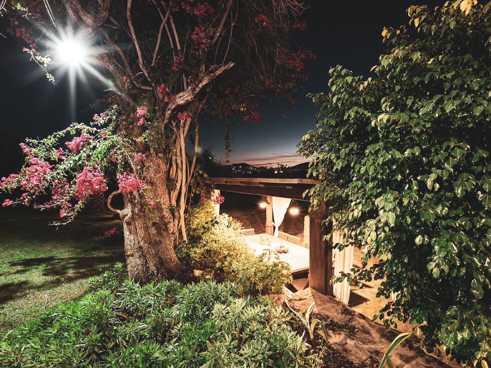 Het villaterrein is verbluffend. Een prachtig groot zwembad (11 x 5,5) is omgeven door een zonneterras en een groot grasveld, met ligstoelen en parasols met kussens om te genieten van de lange zomerdagen op Ibiza, ontspannen in de zon. Een bbq en een grote beschutte eethoek zijn vlakbij, perfect om buiten te dineren en om te entertainen. Er zijn ook een aantal ligbedden in cabana-stijl verspreid over het pand om helemaal te relaxen.