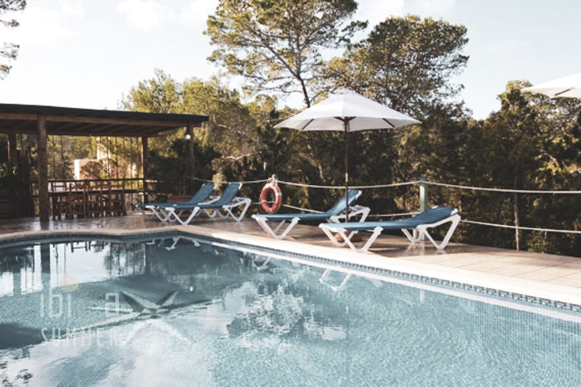 The spectacular large private swimming pool and sheltered barbeque and outside dining area is surrounded by pines and completely private. If looking for a beautiful villa for up to 6 people in the south-west of Ibiza, this is a top choice amongst Ibiza holiday villas.